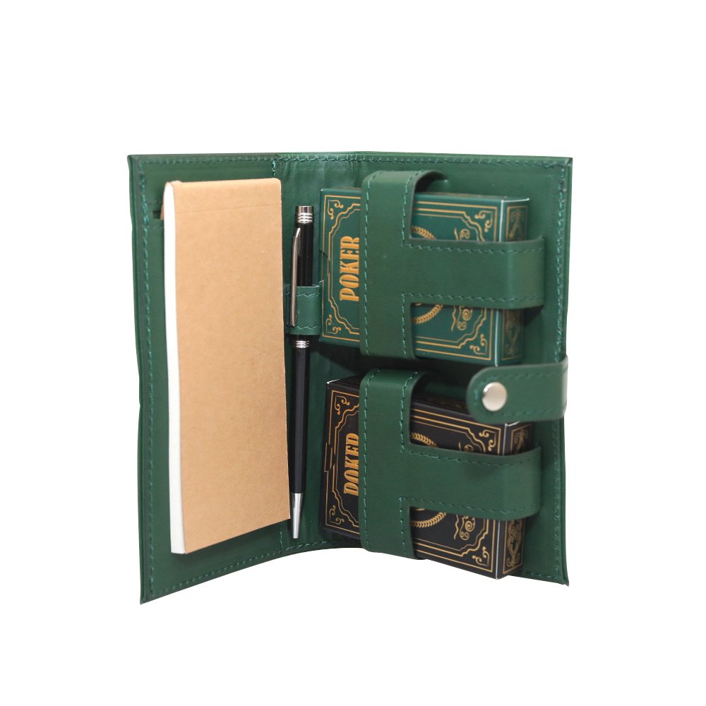189201 - 2 pakketpakketten van kaartpakketten met pen en carpin in groen leer 17x10.5x4cm - aulica