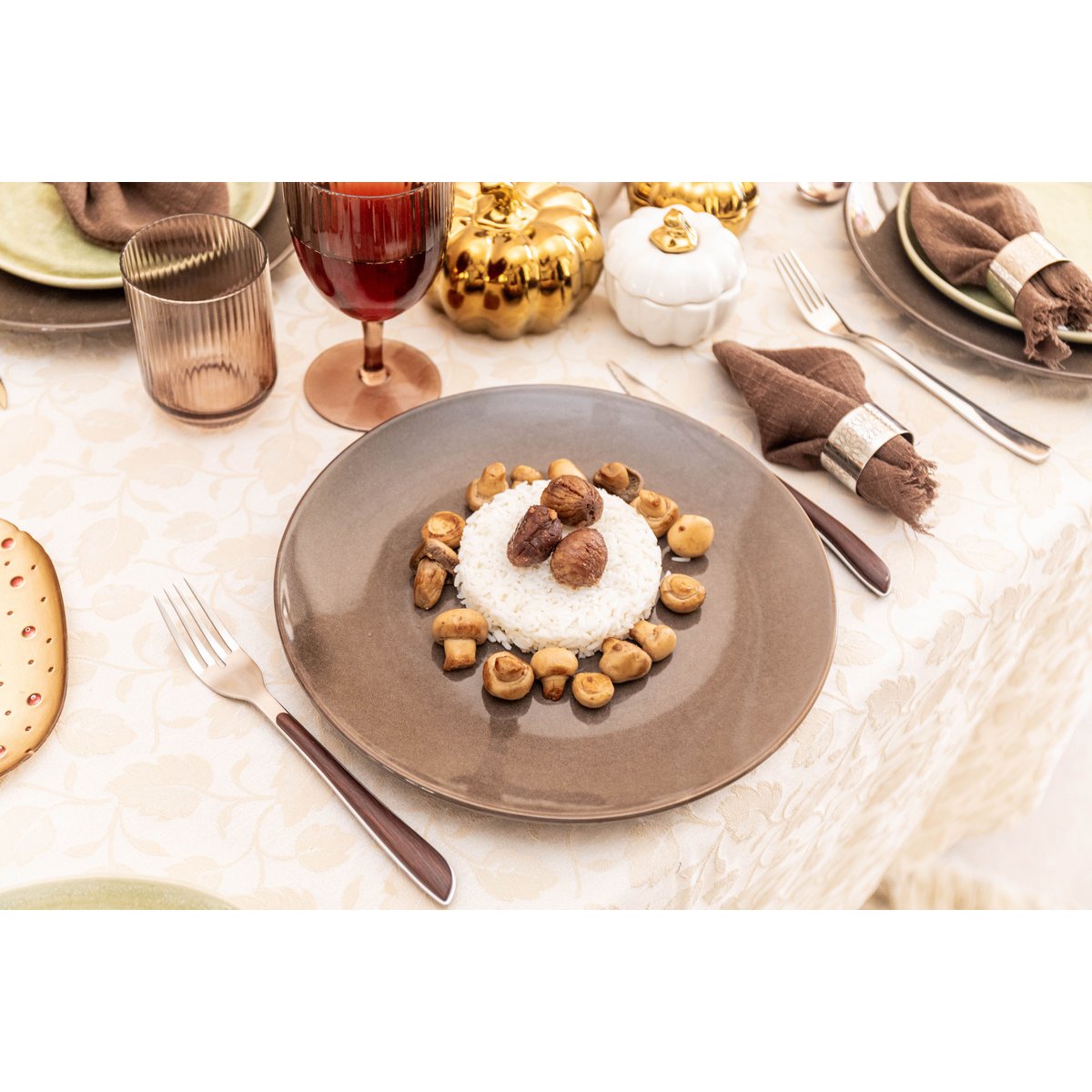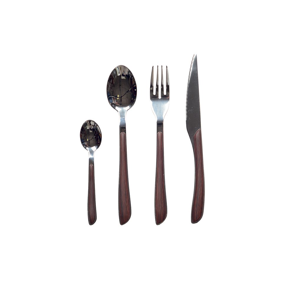 L'Elégance et la Brillance S'harmonisent Dans Cet Ensemble de Couverts Argent Brillant Avec Manches en Bois, Offrant Une Touche de Luxe à Votre Routine Quotidienne.