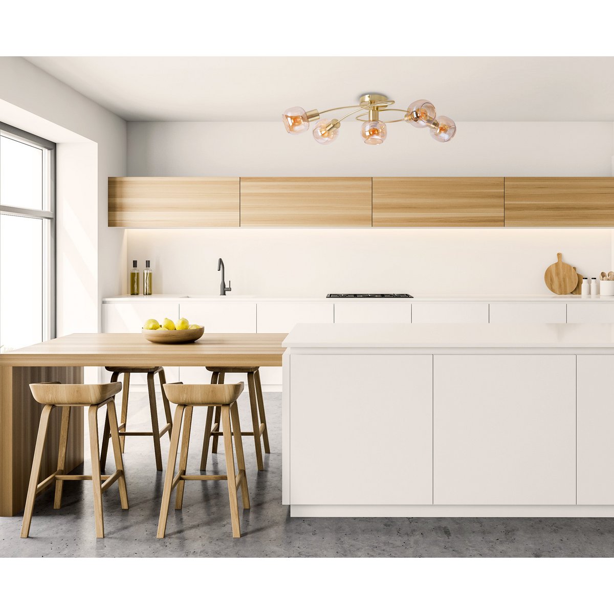Die Deckenleuchte Unserer Kollektion Libby - Ein Hoogtepunt Für Ihr ZuHause Deckenleuchten Sind ideaal, um einen raum flächig auszuleuchten. Sie Bieten Eine Breite Streuung des Lichts, Das Jede Ecke des Raums Erreicht, und Schaffen So Eine Helle Und Antenehme Atmosphäre. Der look Dieser lampe im retro stijl wird durch ihre Geschwungene Gestaltung Gekonnt Unterstrichen. Perfekt für alle, Die es Elegant und Edel Mögen! Mit ihrem messingen ontwerp und der verwendung von metall und glas ist diese leucht ein absolute hingucker. Die Verbindung Aus Mattiertem Gestell und dem Klar-transparanteen Schirm Ergibt Ein GeschmackVolles Gesamtbild. Die Deckenleuchte misst 67,5 cm in der länge, 23,5 cm in der breite/tiefe und 18,5 cm in der Höhe. Schaffen Sie Eine Gemütliche Smosfäre in Jedem Raum Mit Dieser DeckenleUchtte, Die Mit 5 G3-Sockeln Ausgestattet ist und Ihnen Die Möglichkeit Zur individu individuuellen bestückung mit leuchtmitteln Bietet. MIT DER OPTIE, DAS Leuchtmittel Selbst Auszutauschen, Sind Sie Nicht Nur Flexibel, Sonder Schonen Auch Ihren GeldBeuterel. Diese leucht etspricht der Klasse 1. Für den netzBetriev dieses Geräts wird eine netzspannung von 220-240v ~ 50Hz Benötigt. Die leuchtte Verfügt über eine Gesamtleistung von 200 watt. Verwijder Qualitativ Hochwertigen Deckenleuchten Sorgen für Das Optimale Lichtambiente und Verleihen Ihrem Zuhause Komfort und Stil in Jedem Raum.