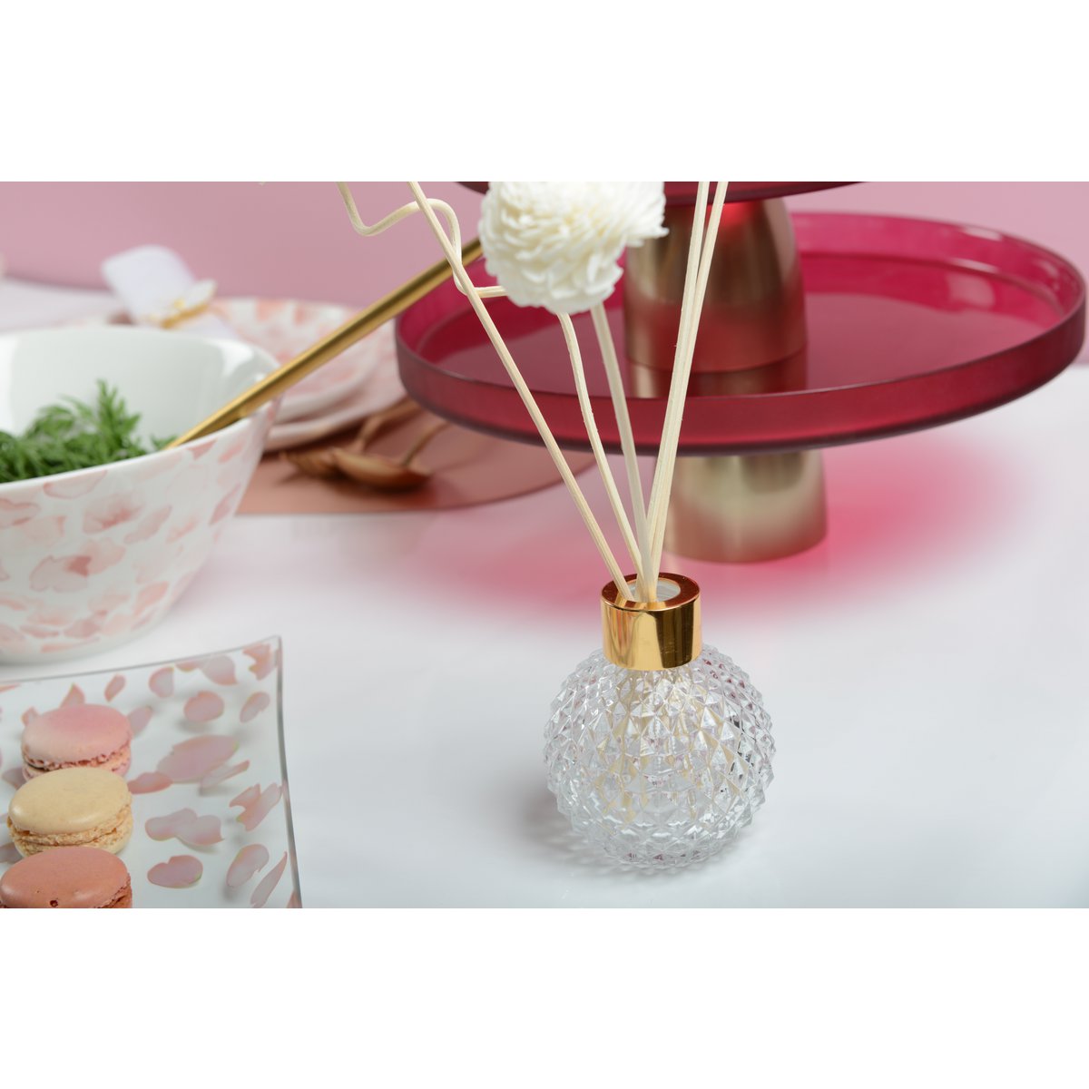 Breng een bloemige en elegante aanraking aan uw interieur met onze 100 ml bloemdiffuser naar de delicate parfum van Gardenia, gepresenteerd in een transparante en gouden ontlastingsfles.