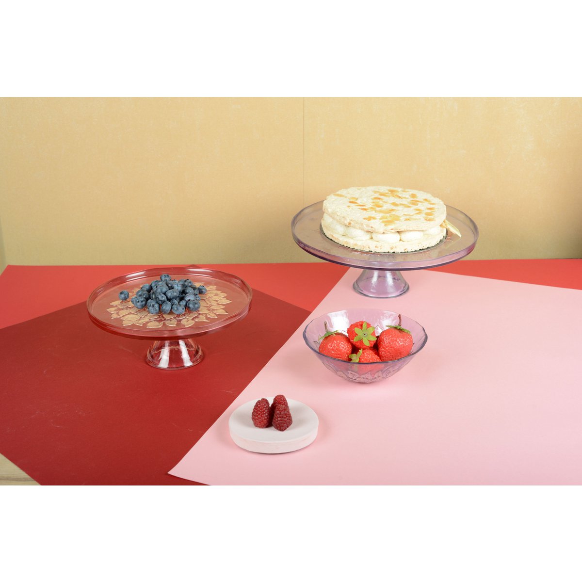 Ontworpen uit robuuste en duurzame materialen, onze taart en op voetgerechten combineren stevigheid en lichtheid voor eenvoudig en praktisch gebruik. Hun elegante afwerking garandeert een lange levensduur, terwijl ze zich aanpassen aan alle omgevingen, van de eenvoudigste tot de meest verfijnde.