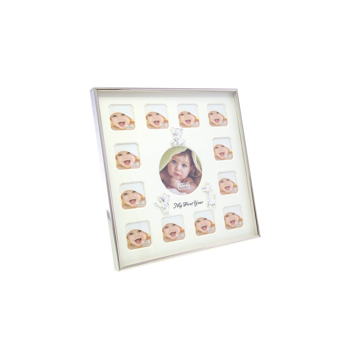 Zilveren kinderframe. Framework 12 foto's om het eerste jaar van uw kind te onthouden