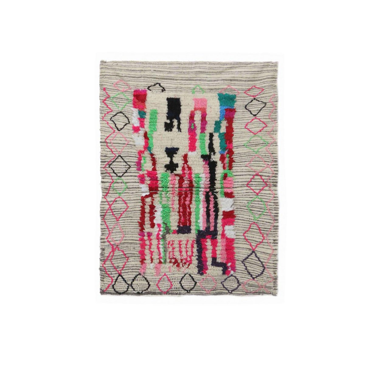 Tover je interieur om tot een comfortabele en warme cocon met dit authentieke vloerkleed geweven in het Atlasgebergte in het hart van Marokko. Onze Berber-tapijten worden gemaakt door vrouwen van Berber-stammen. Het maken van deze tapijten vereist uitzonderlijk vakmanschap, doorgegeven van generatie op generatie, evenals een grote dosis geduld. Het duurt 1 tot 4 maanden – afhankelijk van de grootte van het vloerkleed – om elk van deze unieke stukken te maken. Onderhoud: regelmatig en voorzichtig afstoffen van het tapijt met een stofzuiger met flexibel mondstuk. Bij vlekken snel deppen met absorberend papier, indien nodig zuiveringszout of Sommières-aarde gebruiken. Afmeting: 103 x 140 cm ◊ Dikte: 0 cm ◊ Materiaal: Wol ◊ Gewicht: 2,2 kg Stam: Ourika ◊ Leeftijd: Eigentijds tapijt Vervaardigingstechniek: Ambachtelijk, handgemaakt