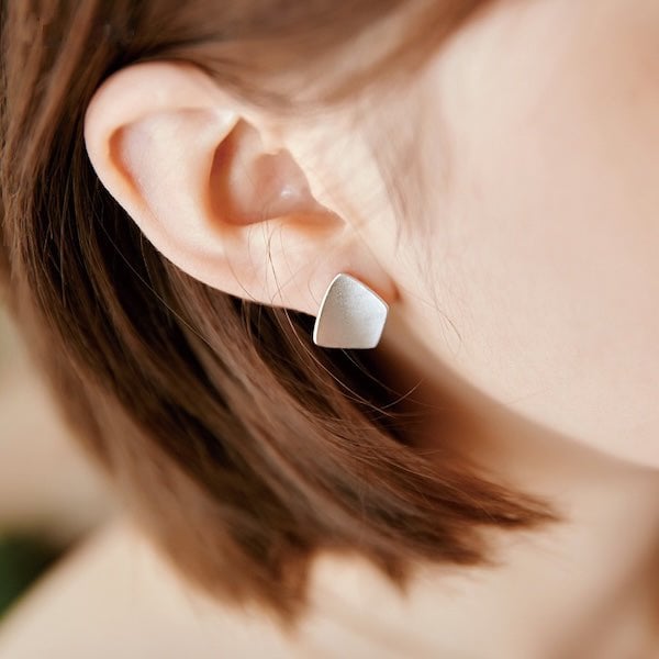 Deze geometrische oorstekers met ruitoppervlak hebben een strak en modern ontwerp dat eenvoud met elegantie combineert. De minimalistische ruitvorm en het matte oppervlak geven deze oorbellen een unieke matte afwerking, perfect voor degenen die een ingetogen stijl waarderen. Met hun uniseks uitstraling bieden deze oorstekers veelzijdigheid en vormen ze een aanvulling op elke outfit, of het nu voor casual of formele gelegenheden is. Deze oorbellen zijn 1,6 x 1,3 cm groot en gemaakt van massief zilver, verkrijgbaar in zowel goudvermeil als sterling zilver. Hun klassieke design gecombineerd met een verfijnde matte look maakt ze tot een perfect uniek cadeau voor iemand die houdt van tijdloze sieraden met een moderne twist.
