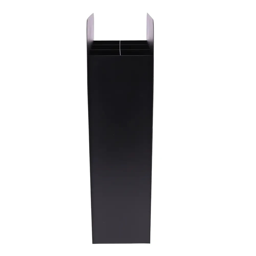 Bewaar je paraplu’s netjes in de Brella paraplubak van Gorillz. Zo heb je ze allemaal bij elkaar liggen en ziet het er ook geordend uit. Verdeeld over 6 aparte vakken zijn de paraplu’s op te bergen. Dankzij een hoogte van 58 cm is de houder hoog genoeg voor alle paraplu’s. Het metaal is gerecycled en hierdoor dus erg duurzaam. Op de onderzijde kunnen 4 antislip pads worden gemonteerd om krassen te voorkomen. Geef een moderne look mee aan de ruimte en kies tussen een zwart of wit. Zo heb je geen last meer van een natte vloer als gevolg van een natte paraplu! Eigenschappen: Moderne look Hoogwaardig metaal Duurzaam materiaal Antislip pads 6 Aparte Sorteervakken Hoogte van 58 cm Verkrijgbaar in zwart en wit Stevig en modern design De paraplubak is gemaakt van hoogwaardig staal en is daarnaast voorzien van een coating die corrosiebestendig is. Dit is wel zo handig als je een natte paraplu op wil bergen. Zo hoef je de paraplu niet eerst te laten drogen, voordat je hem mee naar binnen neemt. De strakke vormen van de bak brengen een strakke en moderne look aan in huis. Antislip pads Bij aankoop van de parapluhouder worden 4 antislip pads meegeleverd. Deze kleine schijfjes zorgen ervoor dat er geen krassen worden gemaakt op de vloer. Je kunt de bak dus zonder problemen heen en weer schuiven om hem een nieuwe plek te geven. Duurzaam geproduceerd Dit product wordt duurzaam geproduceerd in onze eigen fabriek. De volledig productie is duurzaam dankzij het gebruik van zonne-energie. De gebruikte materialen zijn gemaakt van gerecyclede grondstoffen. Maak een milieubewuste keuze met de meubels en accessoires van Gorillz! Specificaties: Merk: Gorillz Materialen: staal Kleur: Zwart Maat: L 21 * B 15.5 * H 58 CM Gewicht: 7.1 kg