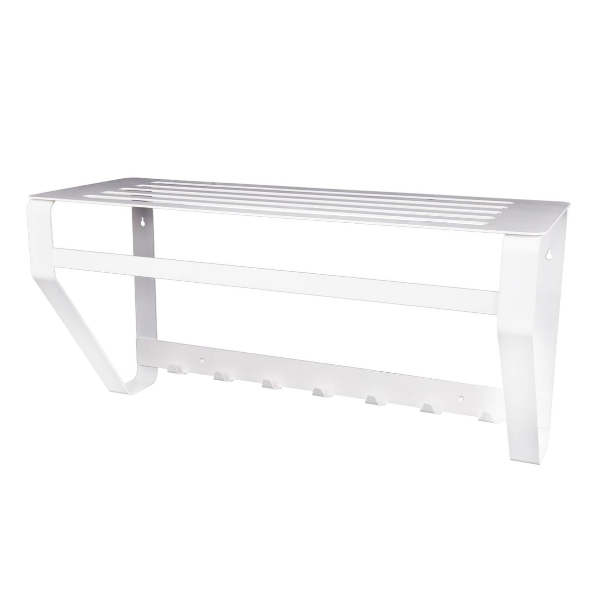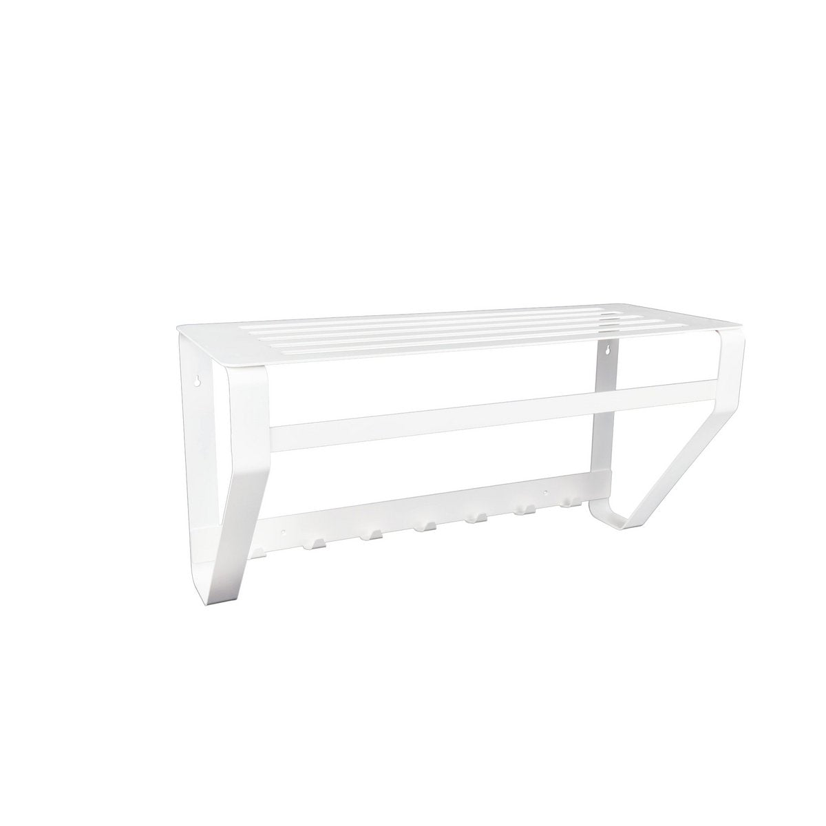 De Gorillz Iron Seven Wandkapstok met hoedenplank is een echte eyecatcher. Maak gebruik van de 7 stevige haken om jassen op te hangen. Naast jassen, biedt de wandkapstok plek voor hoeden op de hoedenplank.De kapstok is ook te gebruiken als wandrek kapstok. Het hoogwaardige metaal is enorm duurzaam en makkelijk te bevestigen aan de muur. Kies uit een witte of zwarte kapstok en combineer hem met het Unify Schoenenrek voor een compleet garderoberek. Eigenschappen: 7 Stevige haken Breedte van 81 cm Hoedenplank en extra opbergruimte Hoogwaardig metaal Makkelijke bevestiging Verkrijgbaar in zwart of wit Te combineren met het Unify Schoenenrek Makkelijk te monteren Het bevestigingsmateriaal wordt bij de aankoop van de Unify Wandkapstok meegeleverd. Zo heb je altijd binnen korte tijd de kapstok al bevestigd. Bevestig eerst de planken om vervolgens het geheel aan de muur te monteren. Markeer de gaten vooraf, om er zeker van te zijn dat het geheel waterpas komt te hangen. Ruimtebesparing Met 7 haken kunnen voldoende jassen worden opgehangen aan deze kapstok. Naast jassen is er ook nog ruimte voor overige spullen. Gebruik hiervoor de twee planken boven de haakjes. De hoogste plank is geschikt voor hoofddeksels en de onderste plank is perfect voor handschoenen en overige spullen. Zo heb je alles bij de hand en dicht bij elkaar. Je bespaart op deze manier veel ruimte. Duurzaam geproduceerd Dit product wordt duurzaam geproduceerd in onze eigen fabriek. De volledig productie is duurzaam dankzij het gebruik van zonne-energie. De gebruikte materialen zijn gemaakt van gerecyclede grondstoffen. Maak een milieubewuste keuze met de meubels en accessoires van Gorillz!