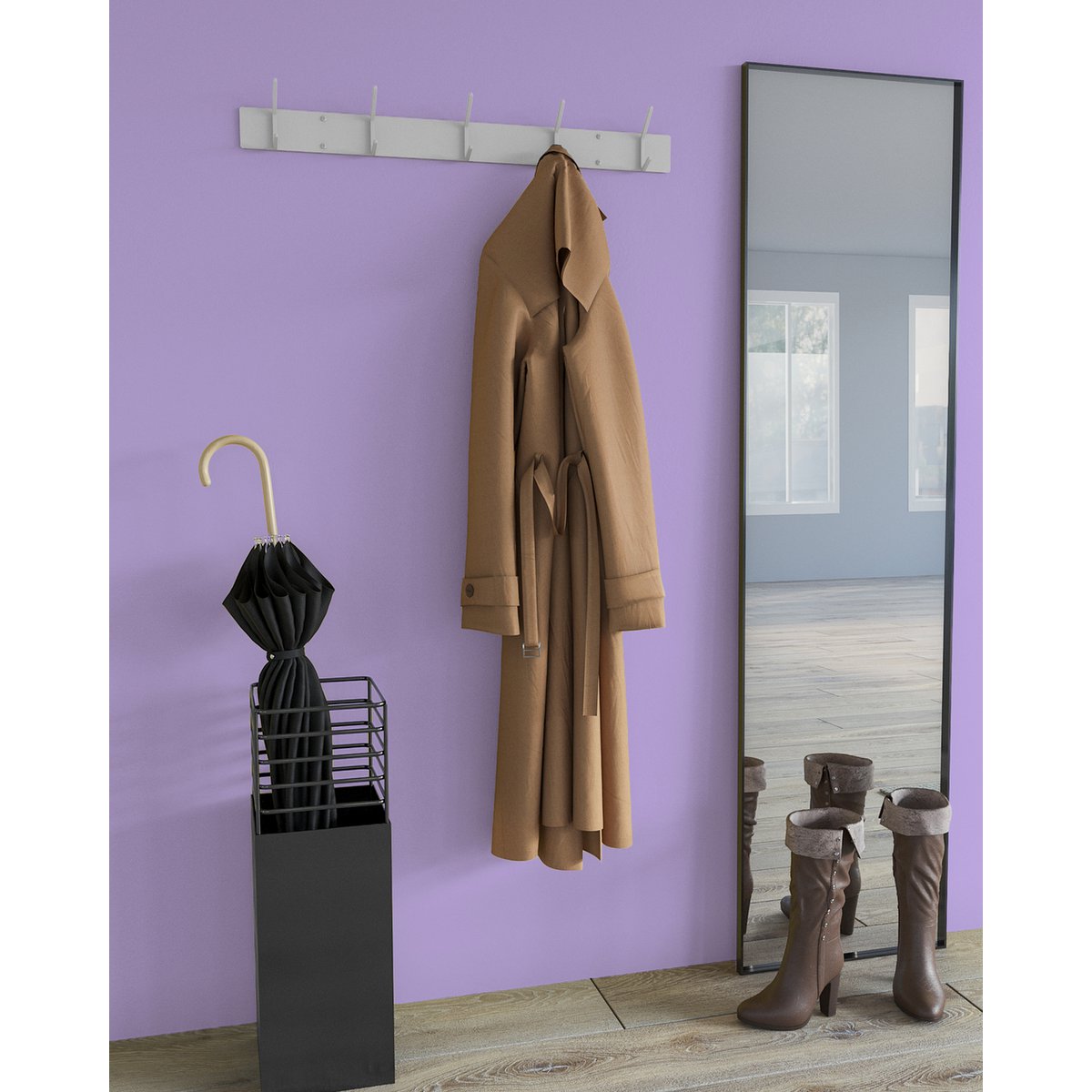 Iedere ochtend een ruime keuze aan kledingstukken en eveneens direct naast de voordeur. Waarom voor de keuze staan als het ook mogelijk is om al uw favoriete jassen en tassen beneden op te hangen. De regenjas, zomerjas en winterjas passen allemaal op de universele wandkapstok. Ideaal voor het wispelturige Nederlandse klimaat!