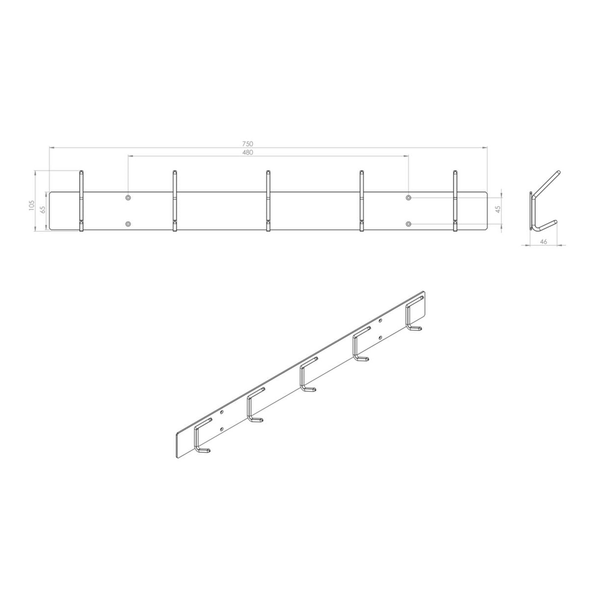 De wandkapstok van Gorillz beschikt over een lengte van 750 millimeter, een breedte van 5,3 millimeter en een hoogte van 104 millimeter. Door middel van het meegeleverde bevestigingsmateriaal kunt u het gemakkelijk en snel aan de muur bevestigen. Hierdoor kunt u binnen enkele minuten uw jassen en tassen ophangen en genieten van de fantastische uitstraling van deze industriële wandkapstok!