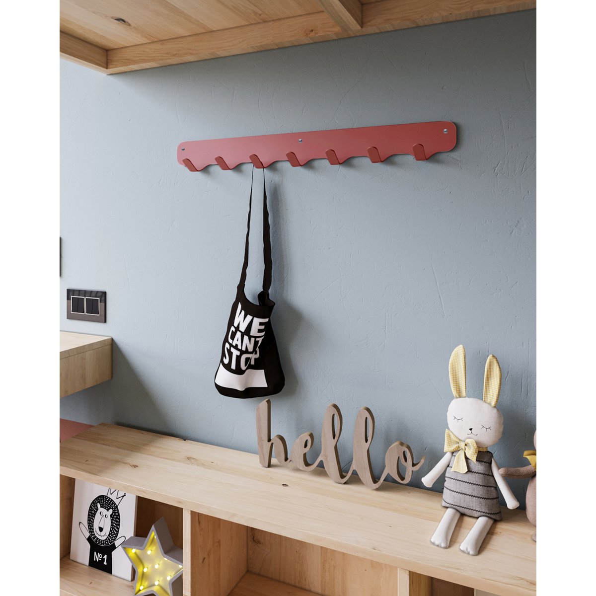 De wandkapstok van Gorillz beschikt over een lengte van 670 millimeter, een breedte van 60 millimeter en een hoogte van 78 millimeter. Door middel van het meegeleverde bevestigingsmateriaal kunt u het gemakkelijk en snel aan de muur bevestigen. Hierdoor kunt u binnen enkele minuten uw jassen en tassen ophangen en genieten van de fantastische uitstraling van deze industriële wandkapstok!