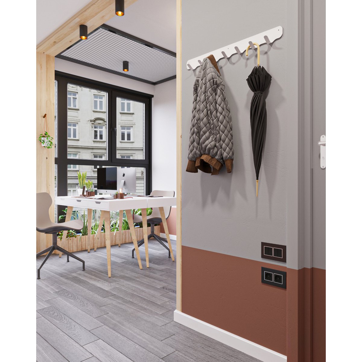 De kapstok is geslepen en is uitgerust met een speciale coating, waardoor het totaal niet scherp is. Hierdoor is het eveneens te gebruiken als zijnde kledinghanger voor kinderen. Uw favoriete en gewenste jassen of colberts aan iedere haak ophangen met daaronder de bijpassende schoenen. De Rounded Seven is een absolute eyecatcher in uw interieur en het beschikbare schoenenrek maakt het perfect!