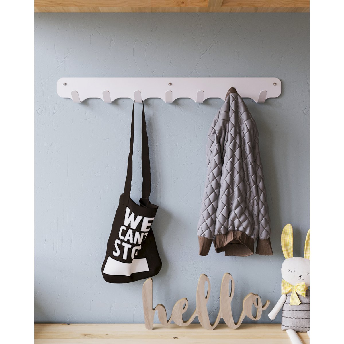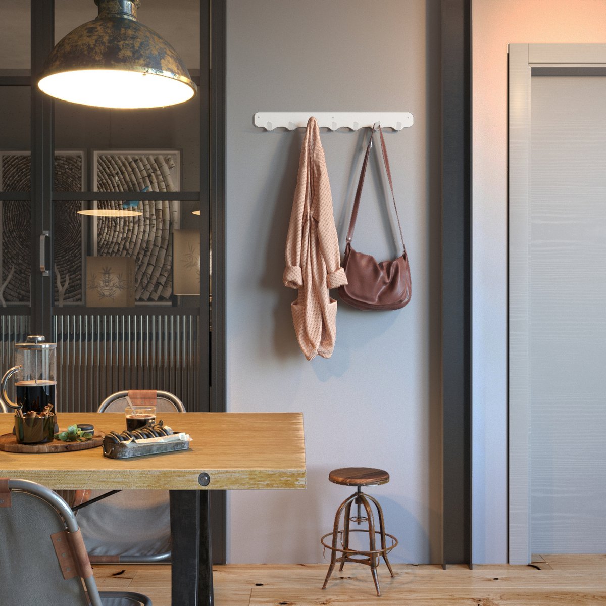 De wandkapstok van Gorillz beschikt over een lengte van 670 millimeter, een breedte van 60 millimeter en een hoogte van 78 millimeter. Door middel van het meegeleverde bevestigingsmateriaal kunt u het gemakkelijk en snel aan de muur bevestigen. Hierdoor kunt u binnen enkele minuten uw jassen en tassen ophangen en genieten van de fantastische uitstraling van deze industriële wandkapstok!
