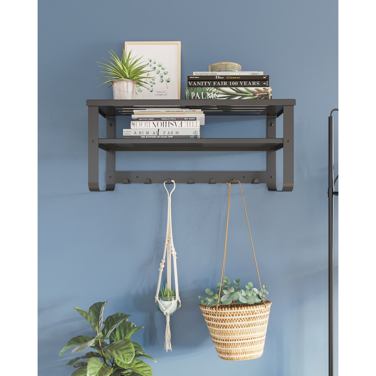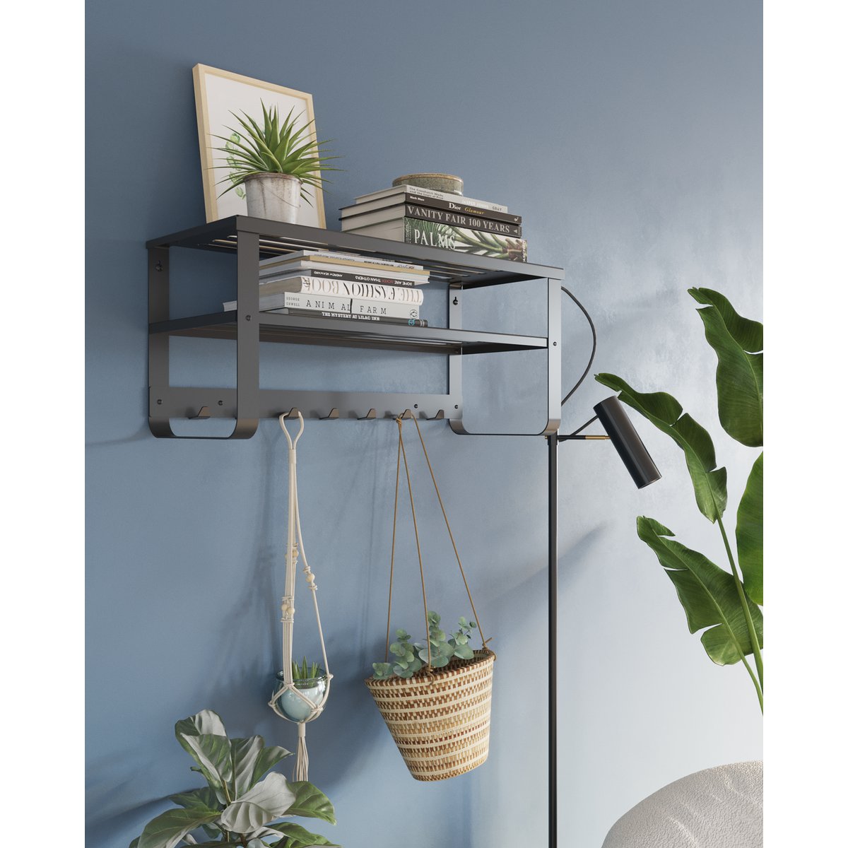 De Gorillz Unify Wandkapstok met hoedenplank is een echte eyecatcher. Maak gebruik van de 7 stevige haken om jassen op te hangen. Naast jassen, biedt de wandkapstok plek voor hoeden op de hoedenplank. Er is zelfs een extra plank aanwezig voor overige spullen. Het hoogwaardige metaal is enorm duurzaam en makkelijk te bevestigen aan de muur. Kies uit een witte of zwarte kapstok en combineer hem met het Unify Schoenenrek voor een compleet garderoberek. Eigenschappen: 7 Stevige haken Breedte van 81 cm Hoedenplank en extra opbergruimte Hoogwaardig metaal Makkelijke bevestiging Verkrijgbaar in zwart of wit Te combineren met het Unify Schoenenrek Makkelijk te monteren Het bevestigingsmateriaal wordt bij de aankoop van de Unify Wandkapstok meegeleverd. Zo heb je altijd binnen korte tijd de kapstok al bevestigd. Bevestig eerst de planken om vervolgens het geheel aan de muur te monteren. Markeer de gaten vooraf, om er zeker van te zijn dat het geheel waterpas komt te hangen. Ruimtebesparing Met 7 haken kunnen voldoende jassen worden opgehangen aan deze kapstok. Naast jassen is er ook nog ruimte voor overige spullen. Gebruik hiervoor de twee planken boven de haakjes. De hoogste plank is geschikt voor hoofddeksels en de onderste plank is perfect voor handschoenen en overige spullen. Zo heb je alles bij de hand en dicht bij elkaar. Je bespaart op deze manier veel ruimte. Duurzaam geproduceerd Dit product wordt duurzaam geproduceerd in onze eigen fabriek. De volledig productie is duurzaam dankzij het gebruik van zonne-energie. De gebruikte materialen zijn gemaakt van gerecyclede grondstoffen. Maak een milieubewuste keuze met de meubels en accessoires van Gorillz!