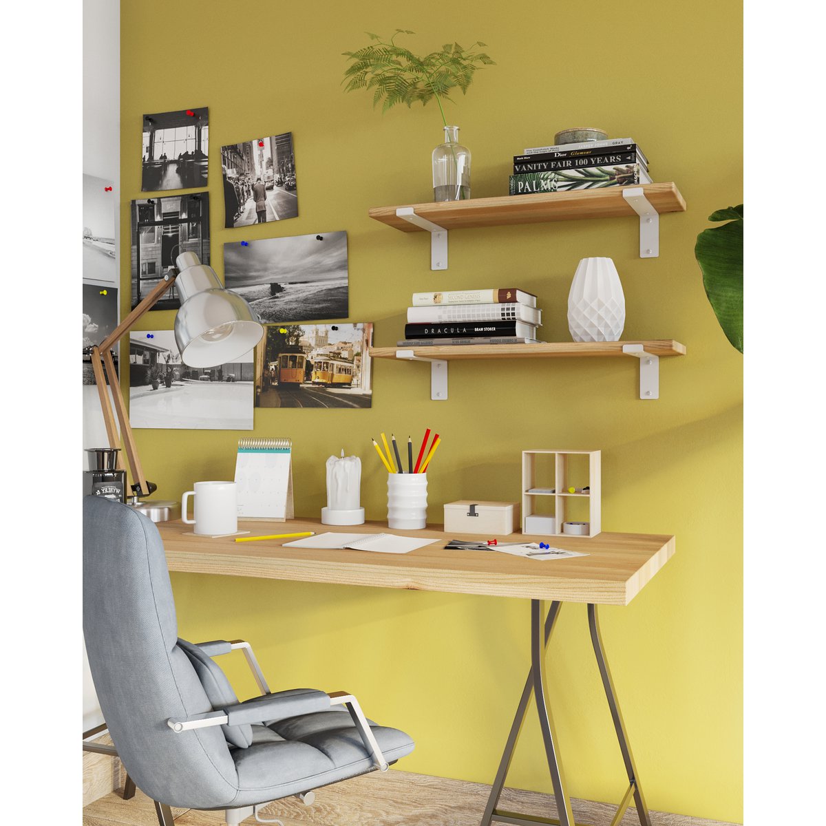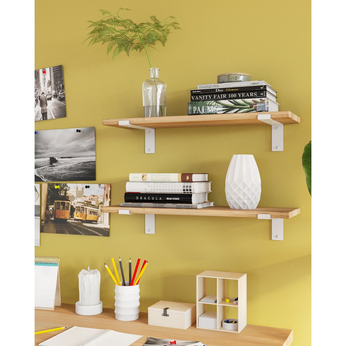 Met de Gorillz Wagon plankdragers creëer je extra opslagruimte of een stijlvolle boekenplank. Deze industriële stalen beugels zijn een sfeervolle aanwinst voor je interieur. De 2 legplankdragers komen met instructies en alle bevestigingsmaterialen zoals schroeven en pluggen voor een moeiteloze installatie. De beugels worden geproduceerd in een milieubewust proces en zijn gemaakt van gerecycled staal. De Wagon is beschikbaar met verschillende binnenmaten (20, 25 en 30 cm) en in de kleuren wit en zwart. Eigenschappen: Set van 2 plankdragers Afmeting beugel: 207 x 38 x 65,5 mm Beschikbare binnenmaten: 20, 25 en 30 cm Gemaakt van hoogwaardig staal Duurzaam geproduceerd Inclusief bevestigingsmateriaal Makkelijk te monteren Monteer de Wagon met de meegeleverde bevestigingsmaterialen. Bevestig de plankdragers met de 4 muurpluggen en 4 bijbehorende schroeven aan de wand. Schroef vervolgens een plank stevig door de beugels met de overige 4 korte schroeven. Markeer de gaten vooraf, om er zeker van te zijn dat het geheel waterpas komt te hangen. Maak je eigen boekenplank Met de Wagon plankdragers van Gorillz creëer je zelf een prachtige boekenplank of meer opbergruimte. Monteer bijvoorbeeld een karakteristieke of moderne houten legplank om de look van je woonkamer of slaapkamer volledig af te maken. De beugels zijn beschikbaar in 20, 25 en 30 cm diep is zijn gemaakt van sterk metaal. Duurzaam geproduceerd Dit product wordt duurzaam geproduceerd in onze eigen fabriek. De volledig productie is duurzaam dankzij het gebruik van zonne-energie. De gebruikte materialen zijn gemaakt van gerecyclede grondstoffen. Maak een milieubewuste keuze met de meubels en accessoires van Gorillz!
