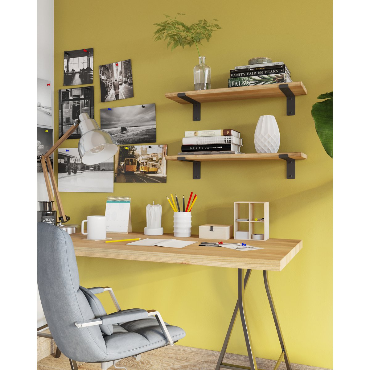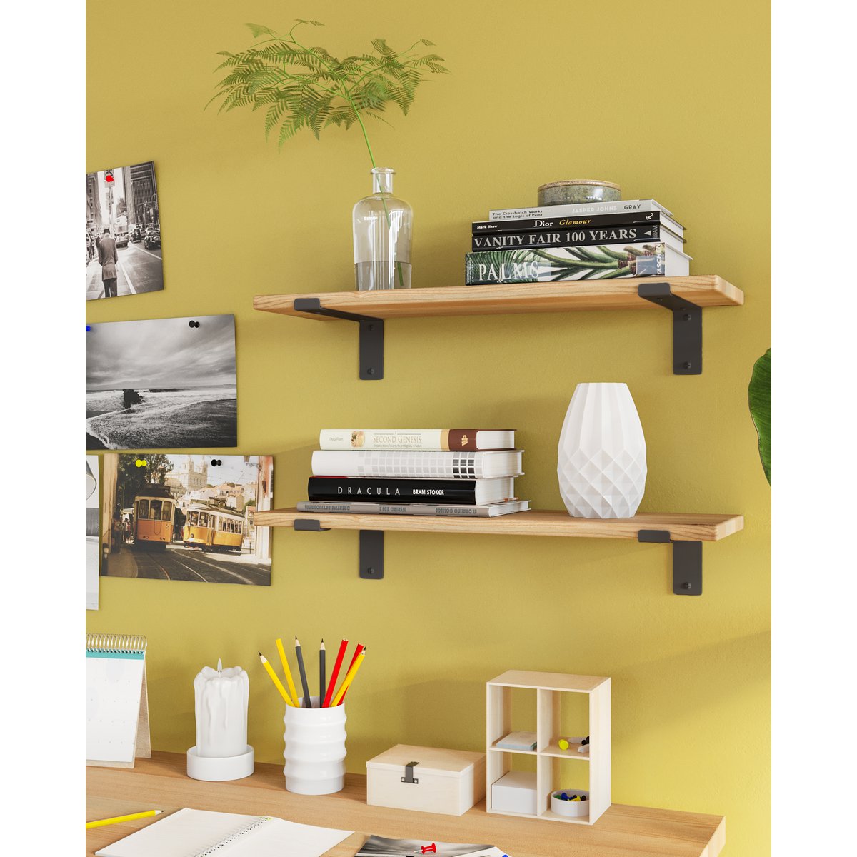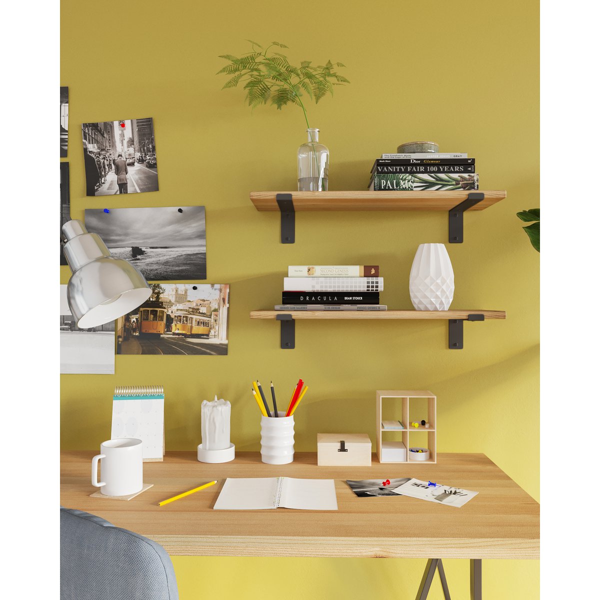 Met de Gorillz Wagon plankdragers creëer je extra opslagruimte of een stijlvolle boekenplank. Deze industriële stalen beugels zijn een sfeervolle aanwinst voor je interieur. De 2 legplankdragers komen met instructies en alle bevestigingsmaterialen zoals schroeven en pluggen voor een moeiteloze installatie. De beugels worden geproduceerd in een milieubewust proces en zijn gemaakt van gerecycled staal. De Wagon is beschikbaar met verschillende binnenmaten (20, 25 en 30 cm) en in de kleuren wit en zwart. Eigenschappen: Set van 2 plankdragers Afmeting beugel: 207 x 38 x 65,5 mm Beschikbare binnenmaten: 20, 25 en 30 cm Gemaakt van hoogwaardig staal Duurzaam geproduceerd Inclusief bevestigingsmateriaal Makkelijk te monteren Monteer de Wagon met de meegeleverde bevestigingsmaterialen. Bevestig de plankdragers met de 4 muurpluggen en 4 bijbehorende schroeven aan de wand. Schroef vervolgens een plank stevig door de beugels met de overige 4 korte schroeven. Markeer de gaten vooraf, om er zeker van te zijn dat het geheel waterpas komt te hangen. Maak je eigen boekenplank Met de Wagon plankdragers van Gorillz creëer je zelf een prachtige boekenplank of meer opbergruimte. Monteer bijvoorbeeld een karakteristieke of moderne houten legplank om de look van je woonkamer of slaapkamer volledig af te maken. De beugels zijn beschikbaar in 20, 25 en 30 cm diep is zijn gemaakt van sterk metaal. Duurzaam geproduceerd Dit product wordt duurzaam geproduceerd in onze eigen fabriek. De volledig productie is duurzaam dankzij het gebruik van zonne-energie. De gebruikte materialen zijn gemaakt van gerecyclede grondstoffen. Maak een milieubewuste keuze met de meubels en accessoires van Gorillz!