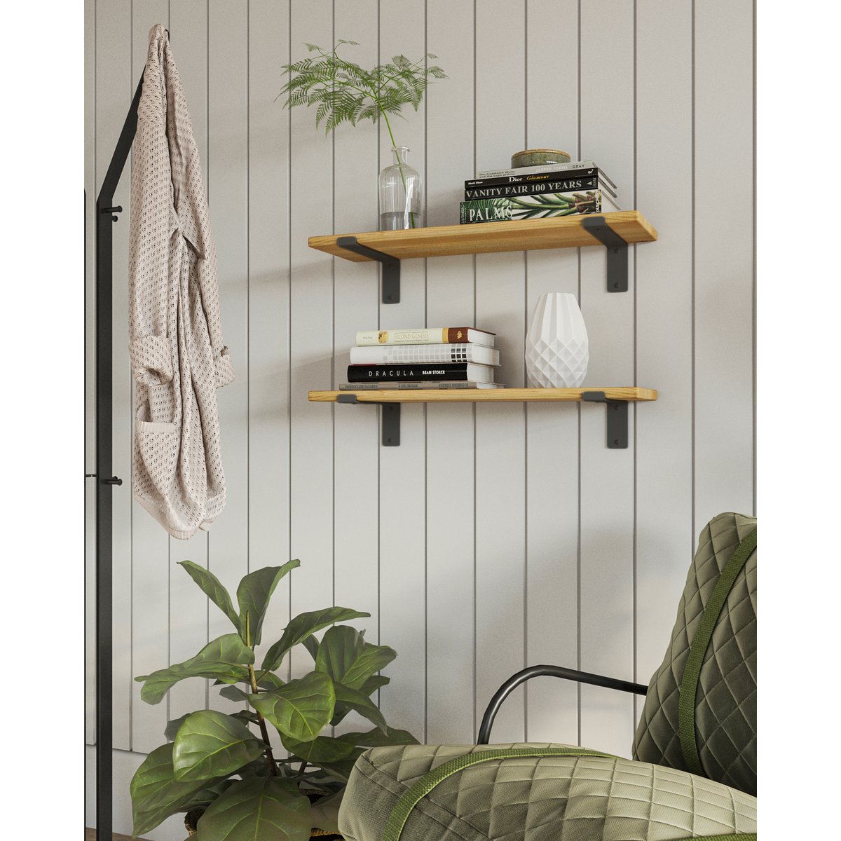 Met de Gorillz Wagon plankdragers creëer je extra opslagruimte of een stijlvolle boekenplank. Deze industriële stalen beugels zijn een sfeervolle aanwinst voor je interieur. De 2 legplankdragers komen met instructies en alle bevestigingsmaterialen zoals schroeven en pluggen voor een moeiteloze installatie. De beugels worden geproduceerd in een milieubewust proces en zijn gemaakt van gerecycled staal. De Wagon is beschikbaar met verschillende binnenmaten (20, 25 en 30 cm) en in de kleuren wit en zwart. Eigenschappen: Set van 2 plankdragers Afmeting beugel: 257 x 38 x 65,5 mm Beschikbare binnenmaten: 20, 25 en 30 cm Gemaakt van hoogwaardig staal Duurzaam geproduceerd Inclusief bevestigingsmateriaal Makkelijk te monteren Monteer de Wagon met de meegeleverde bevestigingsmaterialen. Bevestig de plankdragers met de 4 muurpluggen en 4 bijbehorende schroeven aan de wand. Schroef vervolgens een plank stevig door de beugels met de overige 4 korte schroeven. Markeer de gaten vooraf, om er zeker van te zijn dat het geheel waterpas komt te hangen. Maak je eigen boekenplank Met de Wagon plankdragers van Gorillz creëer je zelf een prachtige boekenplank of meer opbergruimte. Monteer bijvoorbeeld een karakteristieke of moderne houten legplank om de look van je woonkamer of slaapkamer volledig af te maken. De beugels zijn beschikbaar in 20, 25 en 30 cm diep is zijn gemaakt van sterk metaal. Duurzaam geproduceerd Dit product wordt duurzaam geproduceerd in onze eigen fabriek. De volledig productie is duurzaam dankzij het gebruik van zonne-energie. De gebruikte materialen zijn gemaakt van gerecyclede grondstoffen. Maak een milieubewuste keuze met de meubels en accessoires van Gorillz!