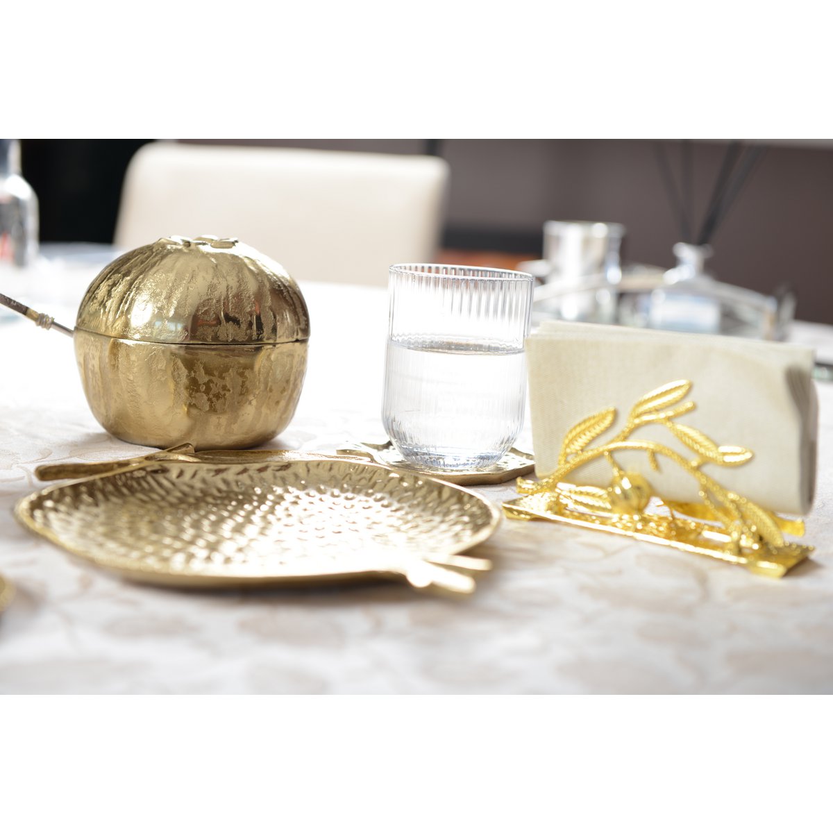 Goudvormig glas in de vorm van een gouden granaatappelBreedte: 10cmHoogte: 1cmLengte: 10cmkleuren: Beige, Zwart, Goud, ZilverMaterialen: Metaal, Massief goud, Keramiekmerk:...
