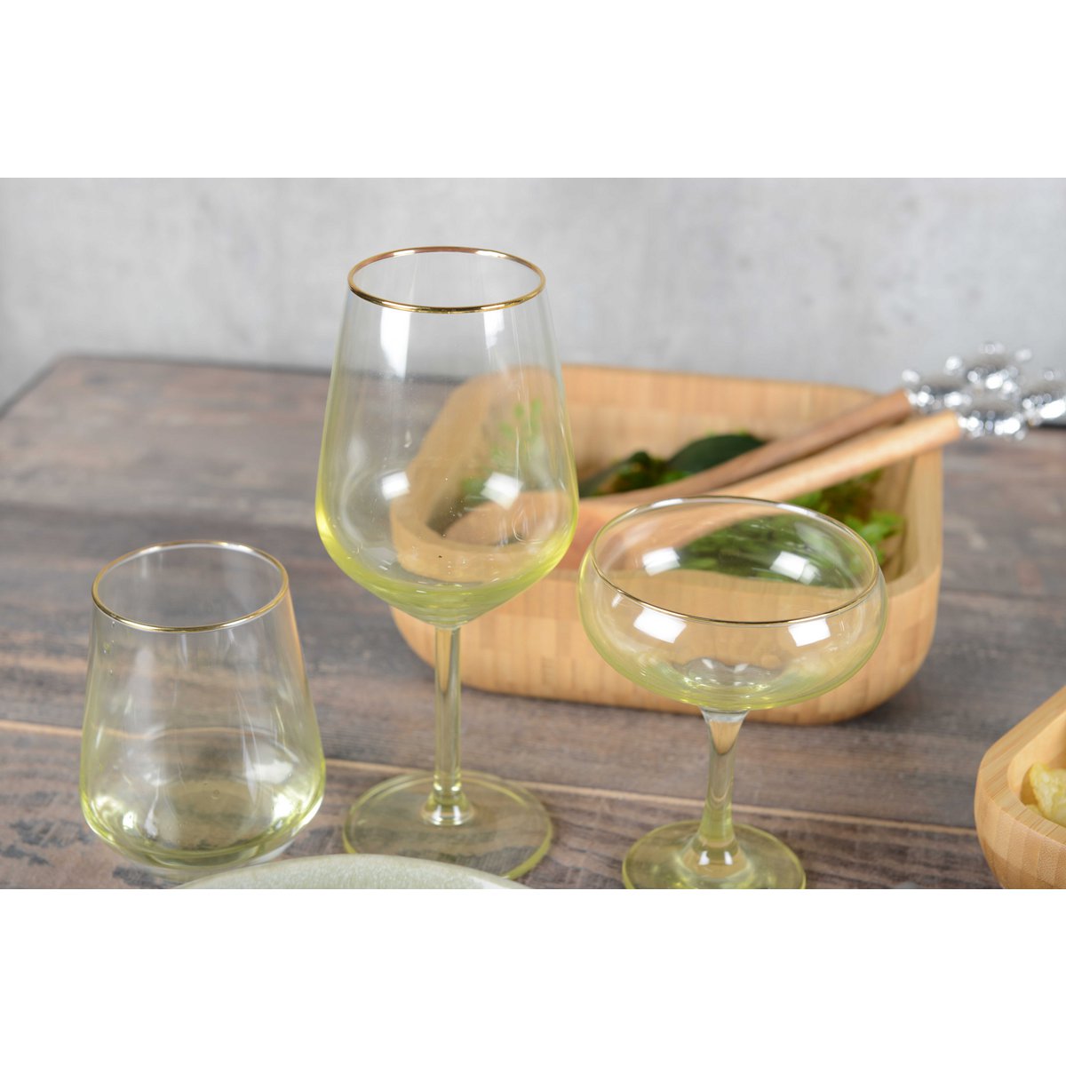 964817 - Set van 4 groene en gele wijnglazen - aulica