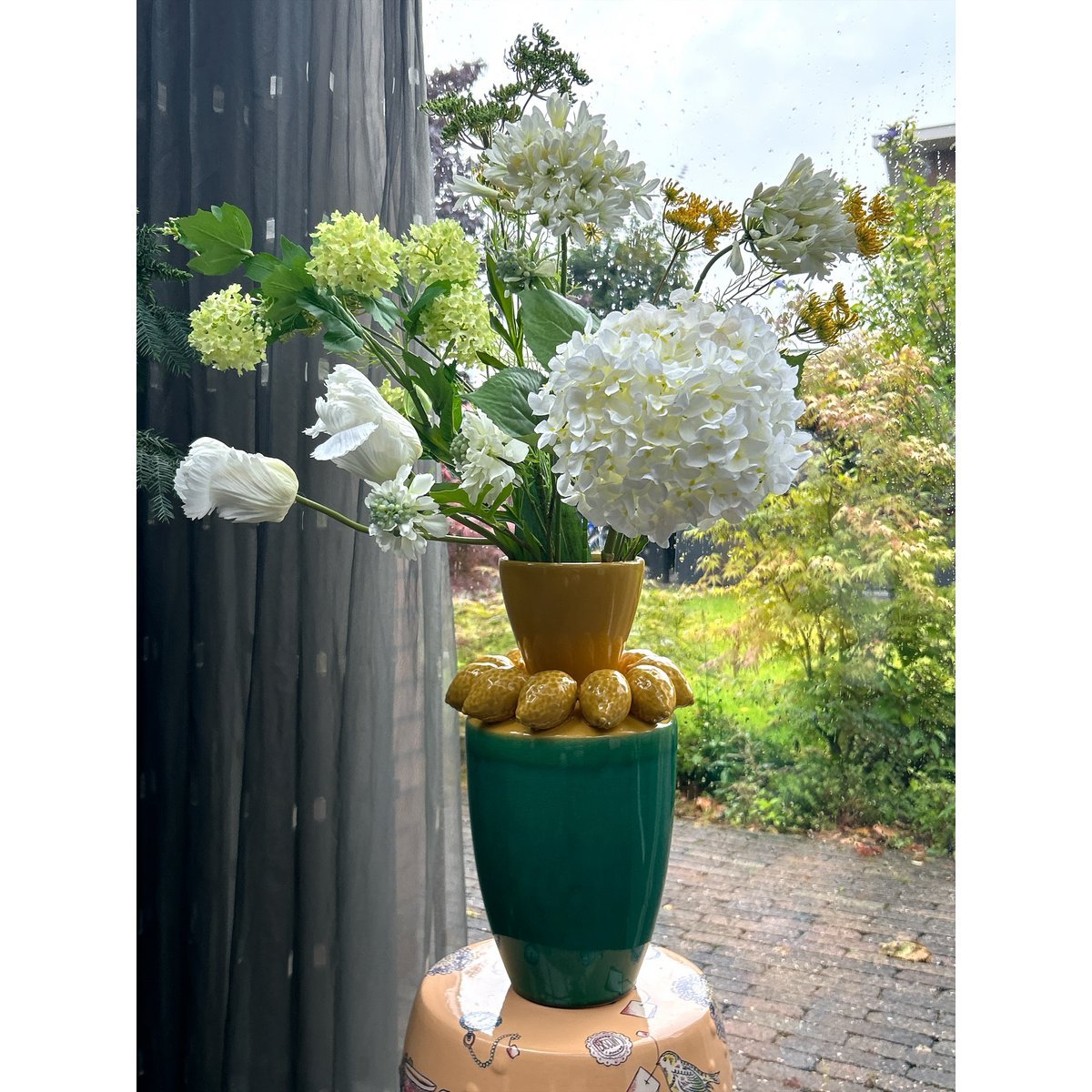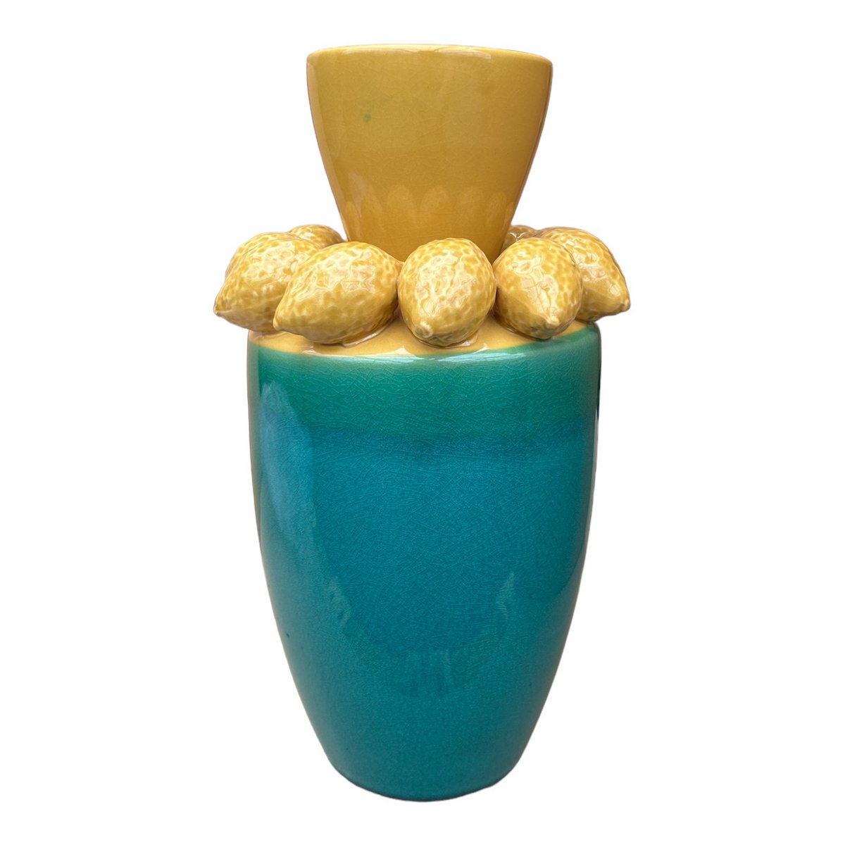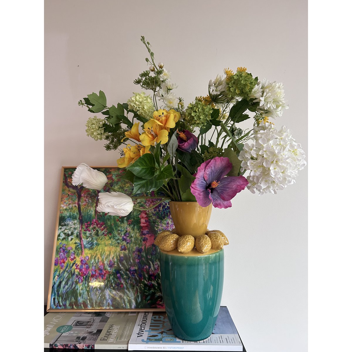 De handgemaakte afwerking geeft elke Vaas Lemon Juice een uniek karakter en gemengd een extra praktische authenticiteit toe aan je interieur. Of je het nu op een bijzettafel, op de vensterbank of als middelpunt van de eettafel geplaatst, deze vaas verlicht een speels en stijlvol element toe aan elke ruimte.