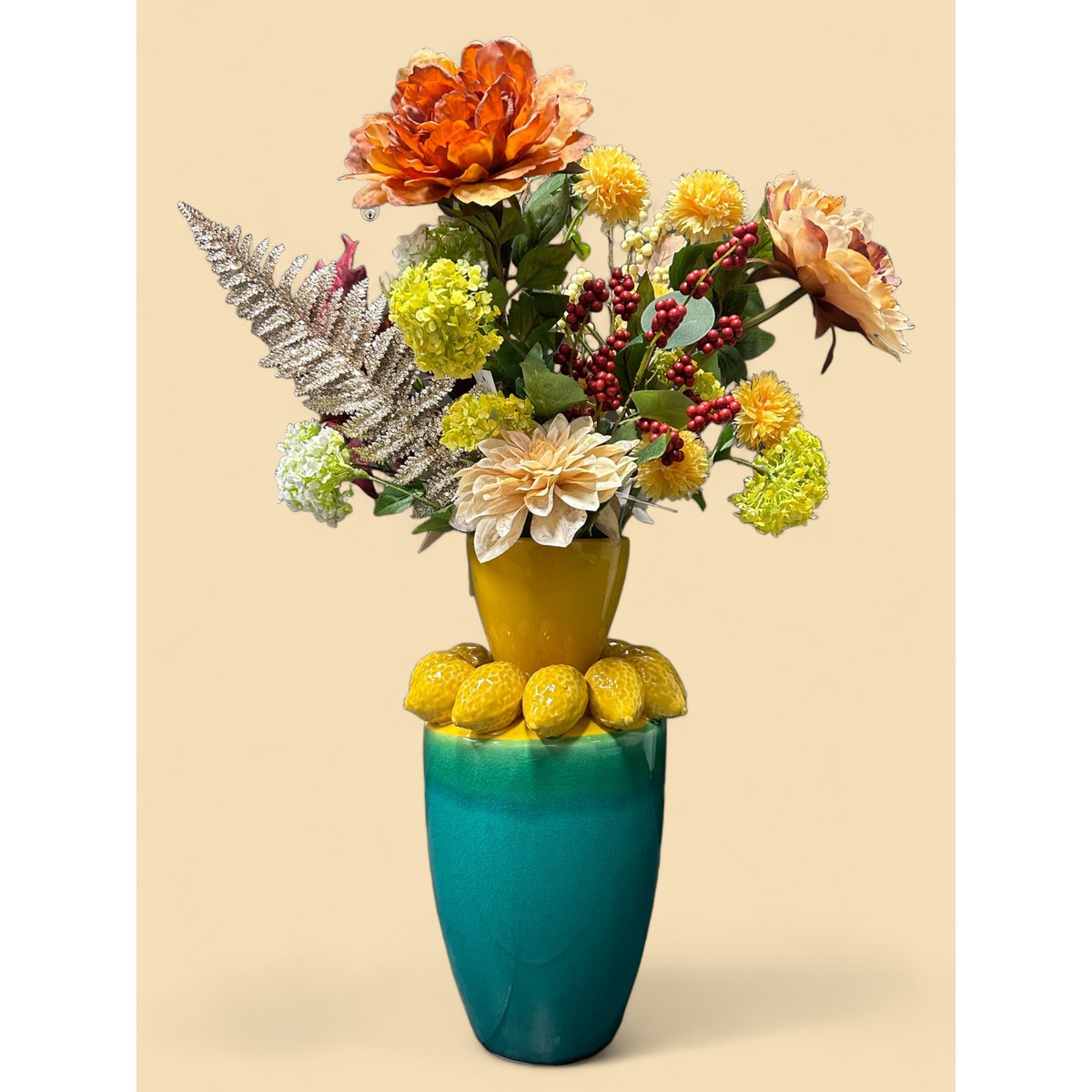 Met een diameter van 22 cm en een hoogte van 37 cm biedt de Vaas Lemon Juice voldoende ruimte om je favoriete bloemen te laten stralen. Gemaakt van hoogwaardige porseleinen en met een gewicht van 3 kg, straalt deze vaas niet alleen kwaliteit uit maar heeft ook een solide en duurzame constructie.