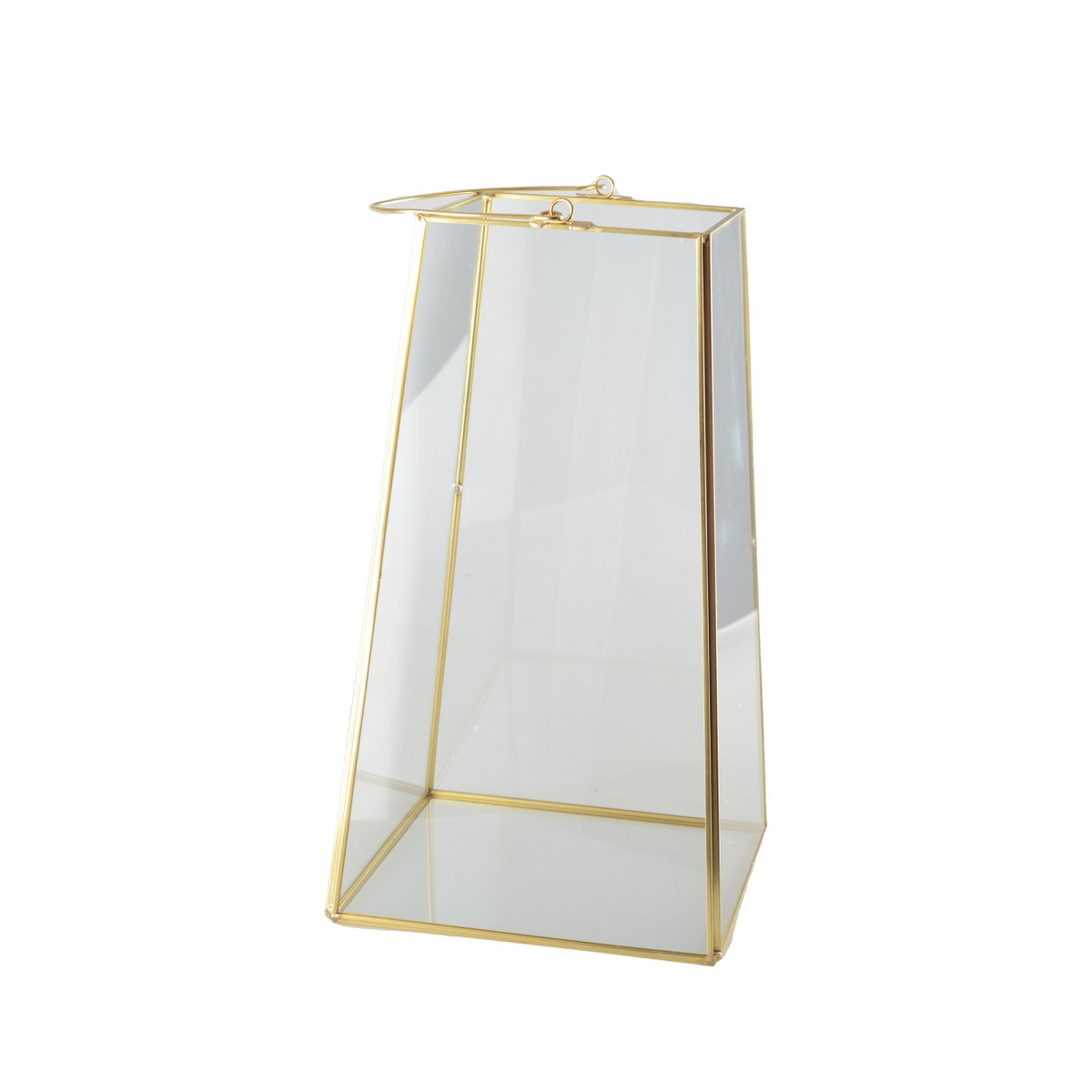 169601 - Glazen lantaarn met handvat en gouden randen 17x17x30cm - aulica