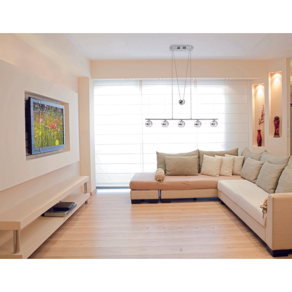 De sfeer hanglamp uit onze collectie is een echte oogvergunning voor elke leefruimte. Met hanglampen maakt u heldere en gerichte verlichting ideale verlichting voor eettafels, keukeneilanden, werkgebieden of elk gebied dat gericht licht vereist. Ze helpen om een bepaalde zone te markeren en een duidelijke lichtbron voor activiteiten te creëren. Een elegante uitstraling en de bundelvorm maken deze lamp in een moderne stijl een onmisbaar element voor iedereen die een harmonieuze meubels waardeert. De lamp is gemaakt van metaal en glas en heeft een chromen kleur. Het glanzende gepolijste oppervlak van het frame zorgt voor een nobele look. De hangende lamp meet 90 cm lang, 7 cm in de breedte/diepte en 150 cm hoog. De slinger heeft een lengte van 100 cm. Met een hanglamp, uitgerust met 5 LED op 5 LED -circuitpartij, breng dan licht naar elke kamer. De lichtbron is stevig geïntegreerd. Deze lamp komt overeen met klasse 2. Dit apparaat is ontworpen voor werking op het power grid en werkt met een netspanning van 220-240V ~ 50Hz. De 15 watt armatuur biedt u 1350 lumen om de kamer te verlichten. 3000 Kelvin lichttemperatuur resulteert in goede en functionele verlichting. Onze hoogwaardige hanglampen zorgen voor de optimale lichtambulary en geven uw huis comfort en stijl in elke kamer.