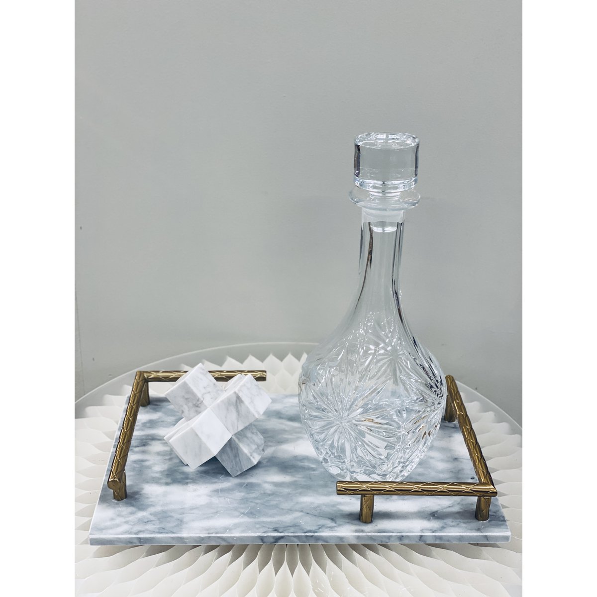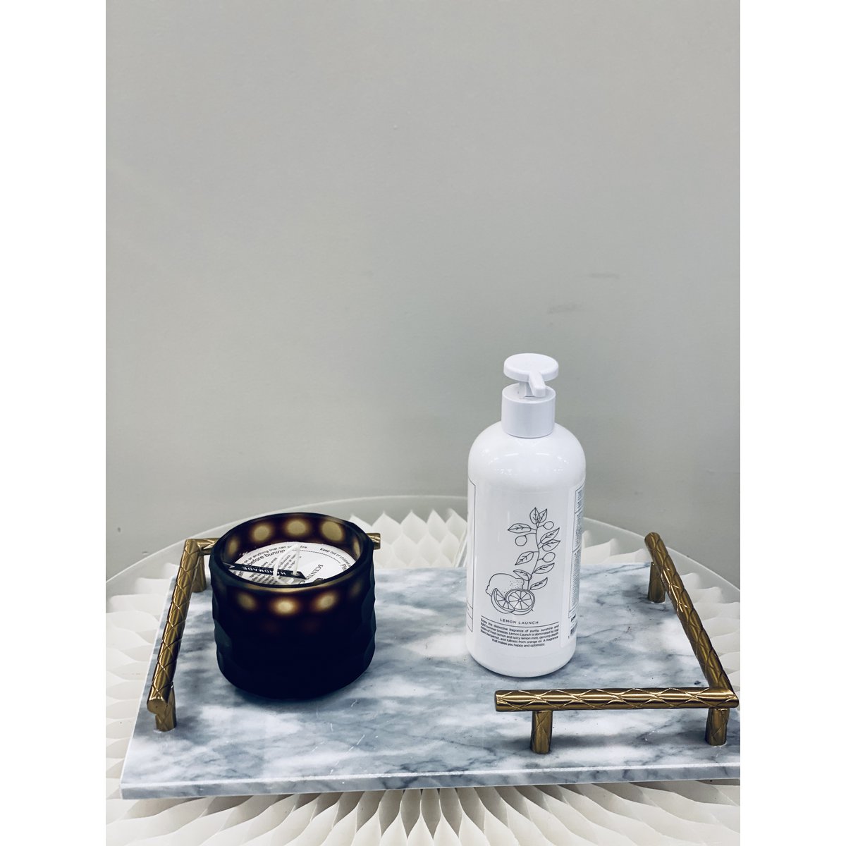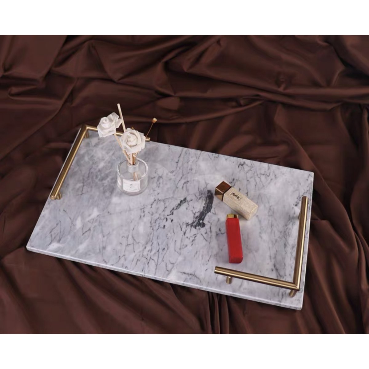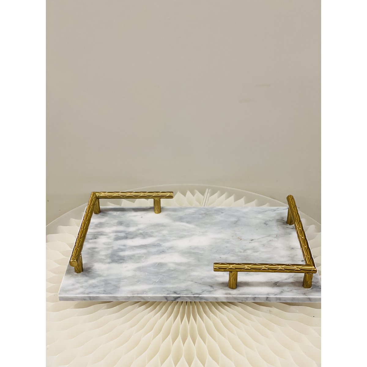 Marmeren dienblad met goudkleurige handgrepen, rechthoekig