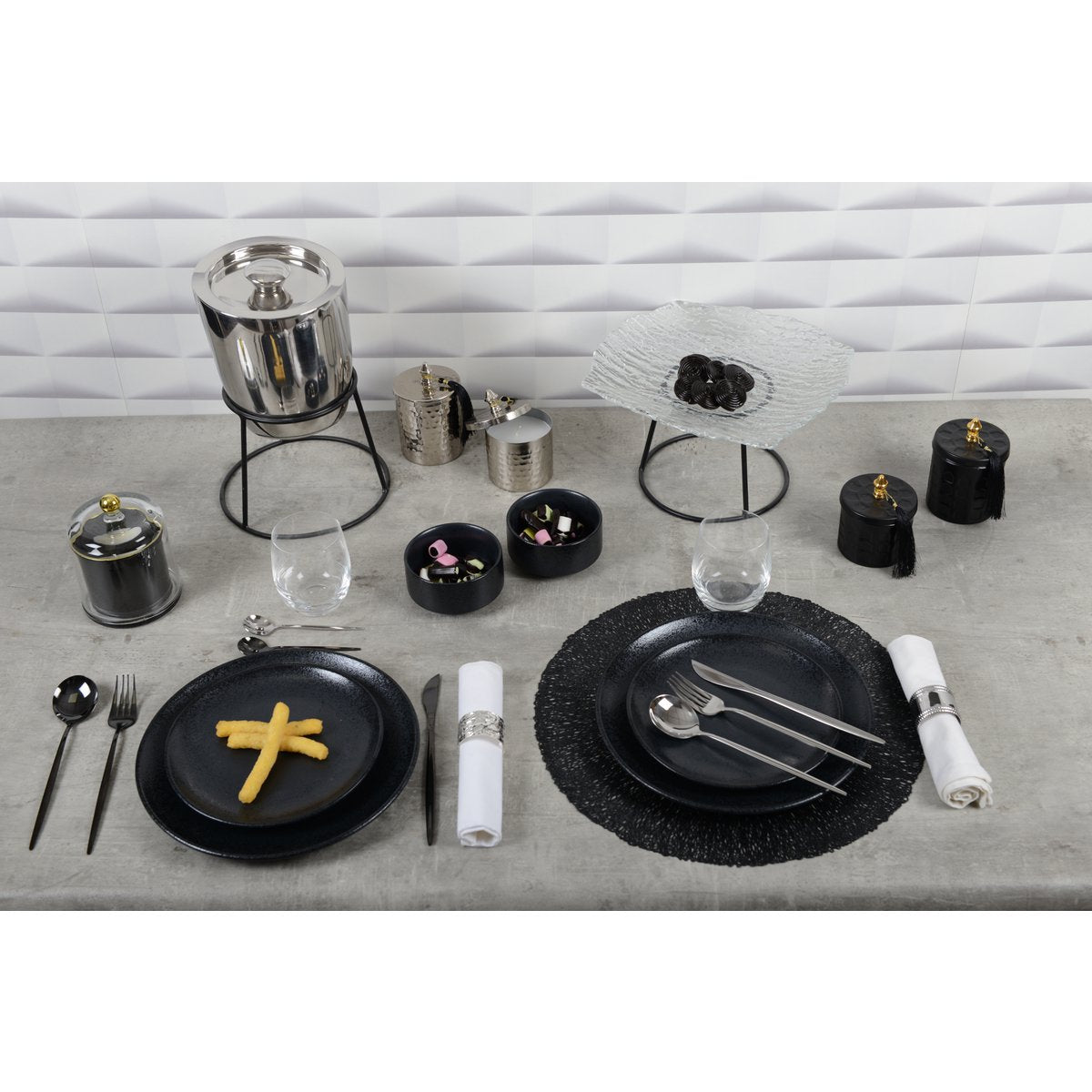 Dompel jezelf onder in een universum met contrast met onze rode en zwarte collectie. Platen aan gedurfde kleuren van rood en zwart voegen een vleugje dramatische verfijning toe aan elke maaltijd, voor memorabele en elegante tafels.