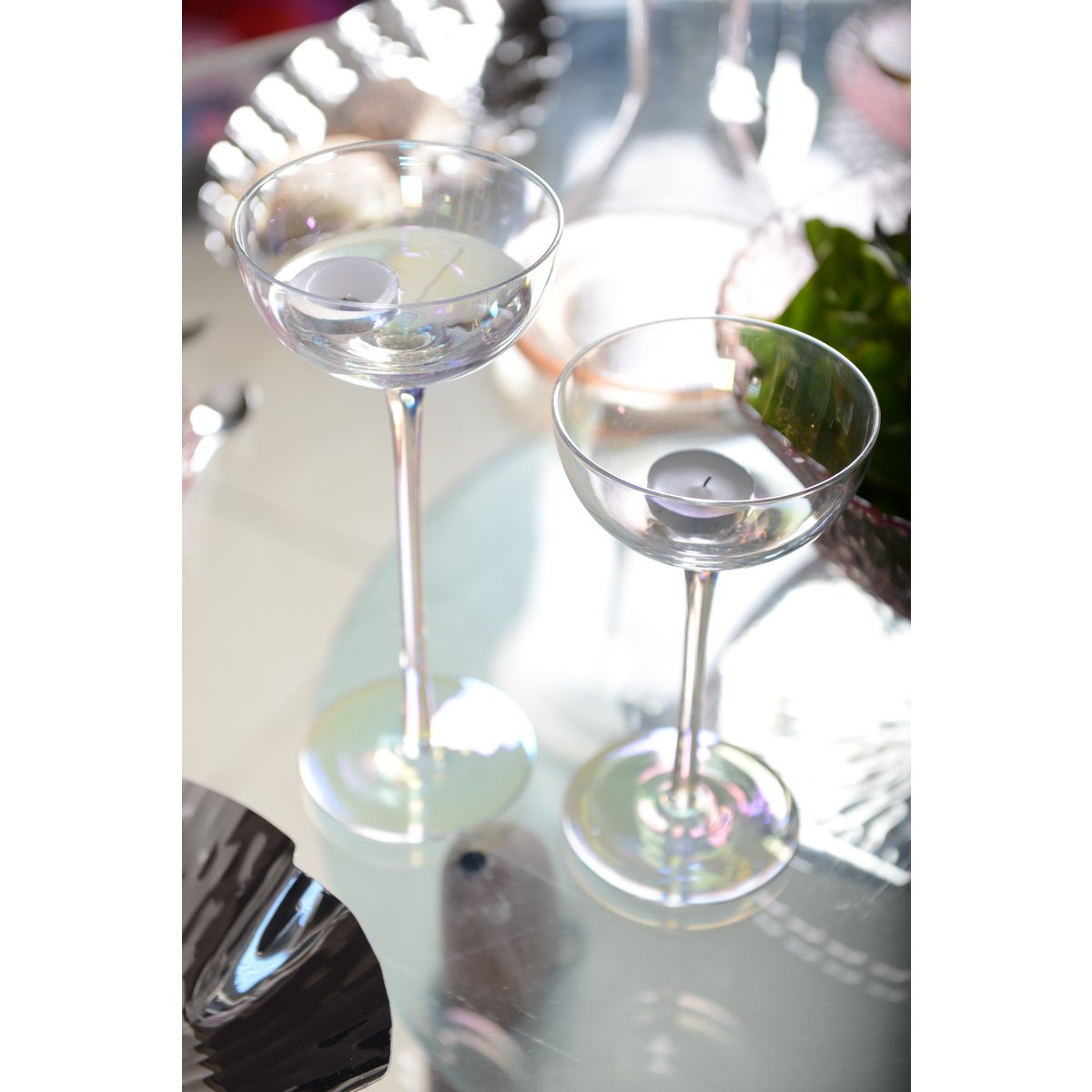 Ideaal om een feesttafel te versieren of om een ontspanningsgebied te verlichten, integreren deze parelachtige glazen fotoforen perfect bij elk type decoratie. Hun harmonieuze en sprankelende ontwerp brengt een vleugje elegantie, terwijl een rustgevende sfeer wordt gecreëerd.
