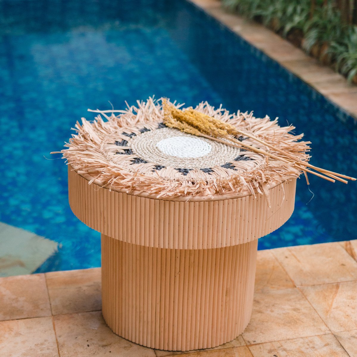 Raffia (Corypha utan) komt van nature voor in de steppe- en bosgebieden van Zuidoost-Azië. Ongeveer elke twee jaar vernieuwt de plant zijn bladeren en werpt de oude af, die vervolgens door de mens worden verzameld, enkele dagen tot weken in de zon worden gedroogd en afhankelijk van de gewenste bruiningsgraad tot vlechtwerk worden verwerkt. De relatieve zeldzaamheid en de hogere verwerkingsinspanning maken dit materiaal iets duurder in vergelijking met andere plantenvezels. Hoewel het in Europa nauwelijks bekend is, heeft het materiaal zich in Zuidoost-Azië bewezen bij de lokale bevolking in de vorm van allerlei alledaagse gebruiksvoorwerpen en is het door zijn aangenaam zachte, maar robuuste karakter erg populair.