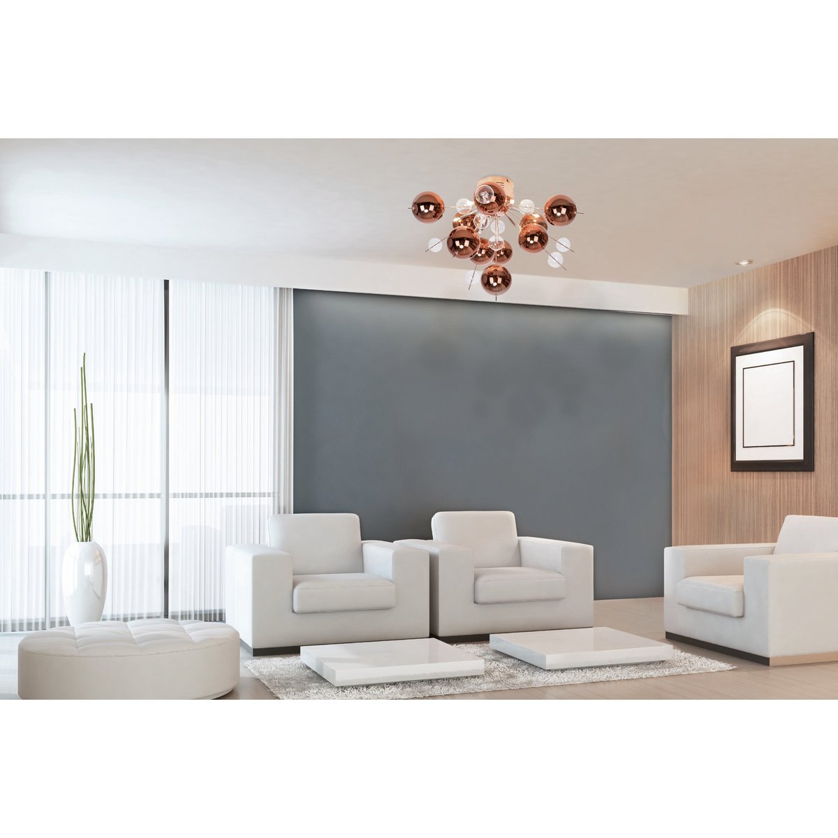 Geef uw huis met het explosieplafondlicht dat zeker iets. Een kamer kan gelijkmatig worden verlicht met een plafondlamp. Het verspreidt het lichtspreiding zodat elke hoek van de kamer helder schijnt en een uitnodigende, heldere sfeer creëert. Moderne stijl, halfcirkelvormig ontwerp en een extravagante look, ideaal voor iedereen die het leuk vindt extravagant en hoge kwaliteit! De lamp gemaakt van metaal en glas is koper en een oogvergunning in elke kamer .. de verbinding gemaakt van chroom -plated frame en de door chroom gedefinieerde paraplu geeft een esthetisch algemeen beeld. De afmetingen van de plafondlamp bedragen 57 cm lang, 57 cm breed en 38 cm hoog. Dus de lamp heeft een diameter van 57 cm. Met deze plafondlamp krijgt u een mooie verlichtingsoptie voor uw woonkamers. Uitgerust met 6 G3 Sockers (die volgens uw wensen zijn uitgerust met geschikte lampen), komt licht op een aantrekkelijke manier in het donker. U kunt de lamp zelf wijzigen, dit bespaart tijd en kosten. Deze lamp komt overeen met klasse 2. Voor de netwerkbewerking van dit apparaat is een spanning van 220-240V ~ 50Hz vereist. Een totale output van 168 watt zorgt voor een heldere en energie -efficiënte gloed in de woonkamer. Onze plafondlampen van hoge kwaliteit zorgen voor de optimale lichtambulary en geven uw huis comfort en stijl in elke kamer.