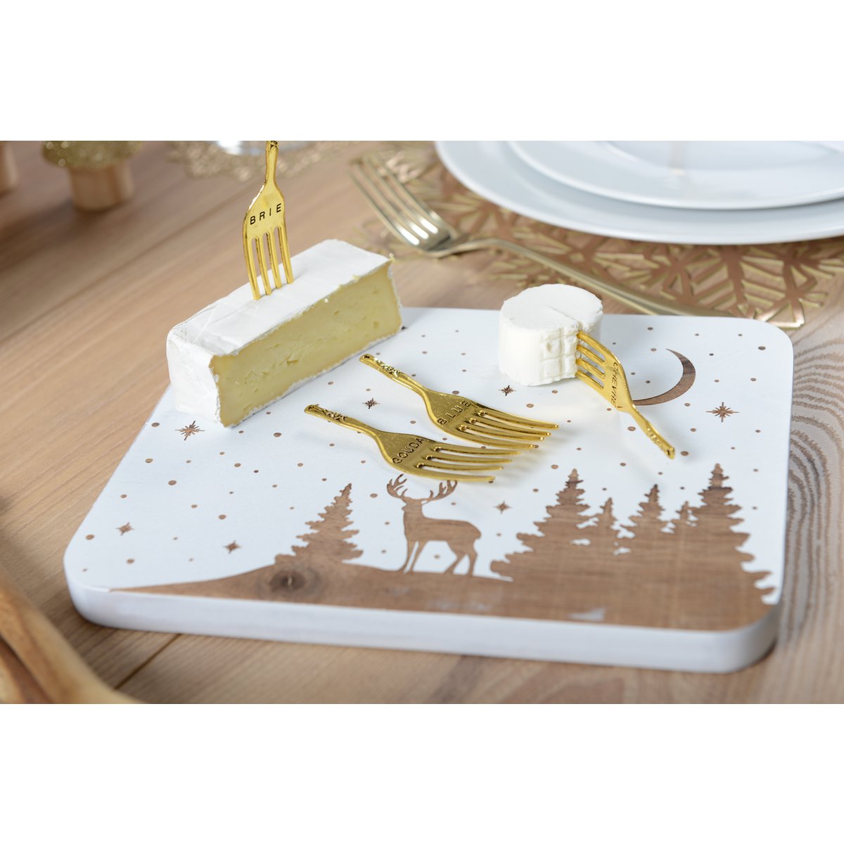 611001 - Rechthoekige herten houtkaaslade en 4 gouden vorken - aulica