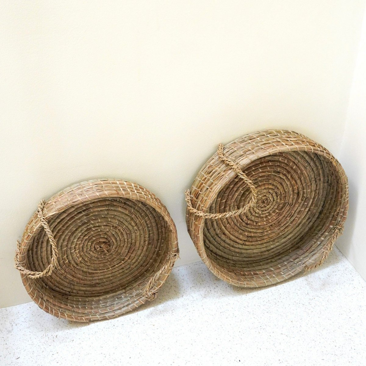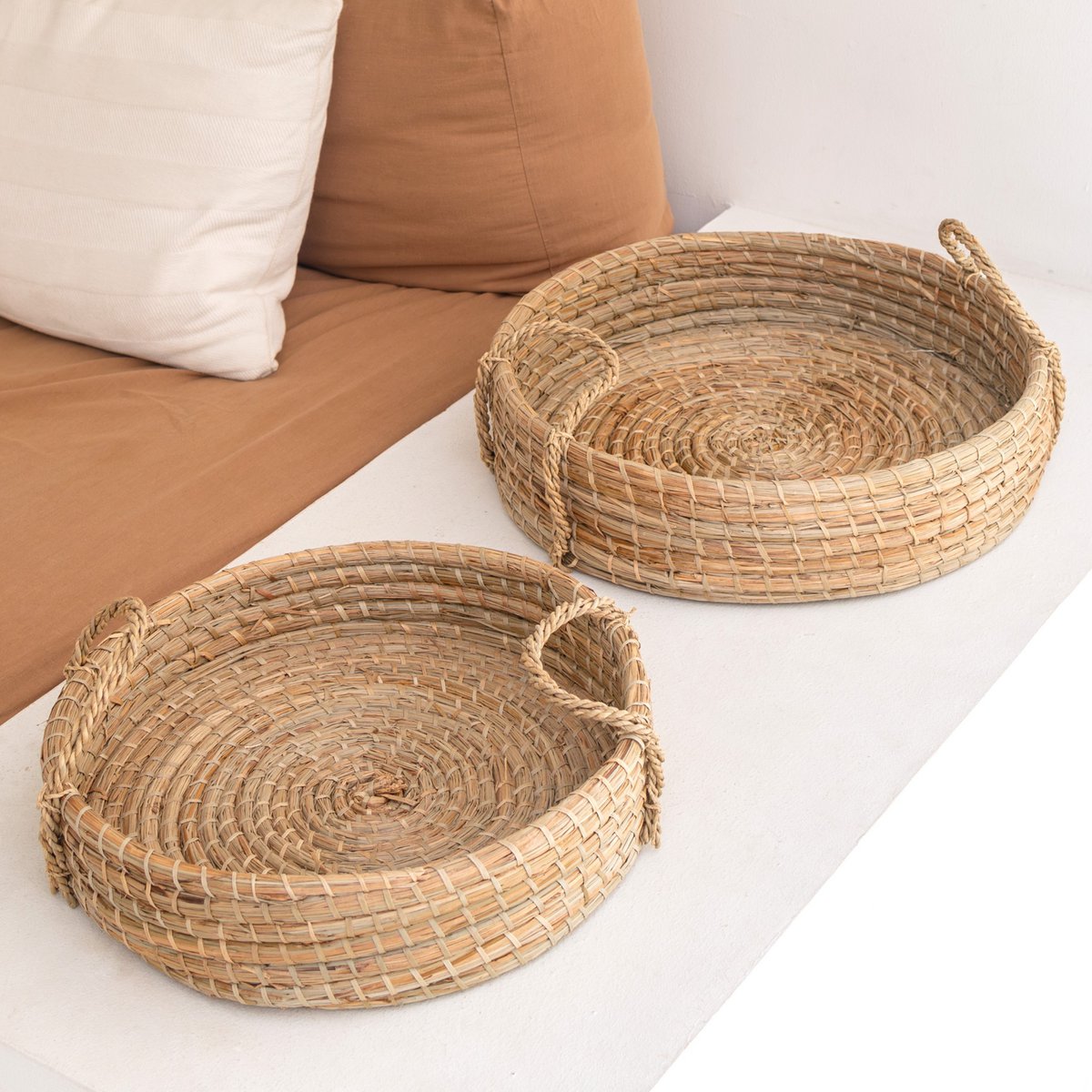 Rond dienblad geweven van zeegras PINTU decoratief dienblad (2 maten)
