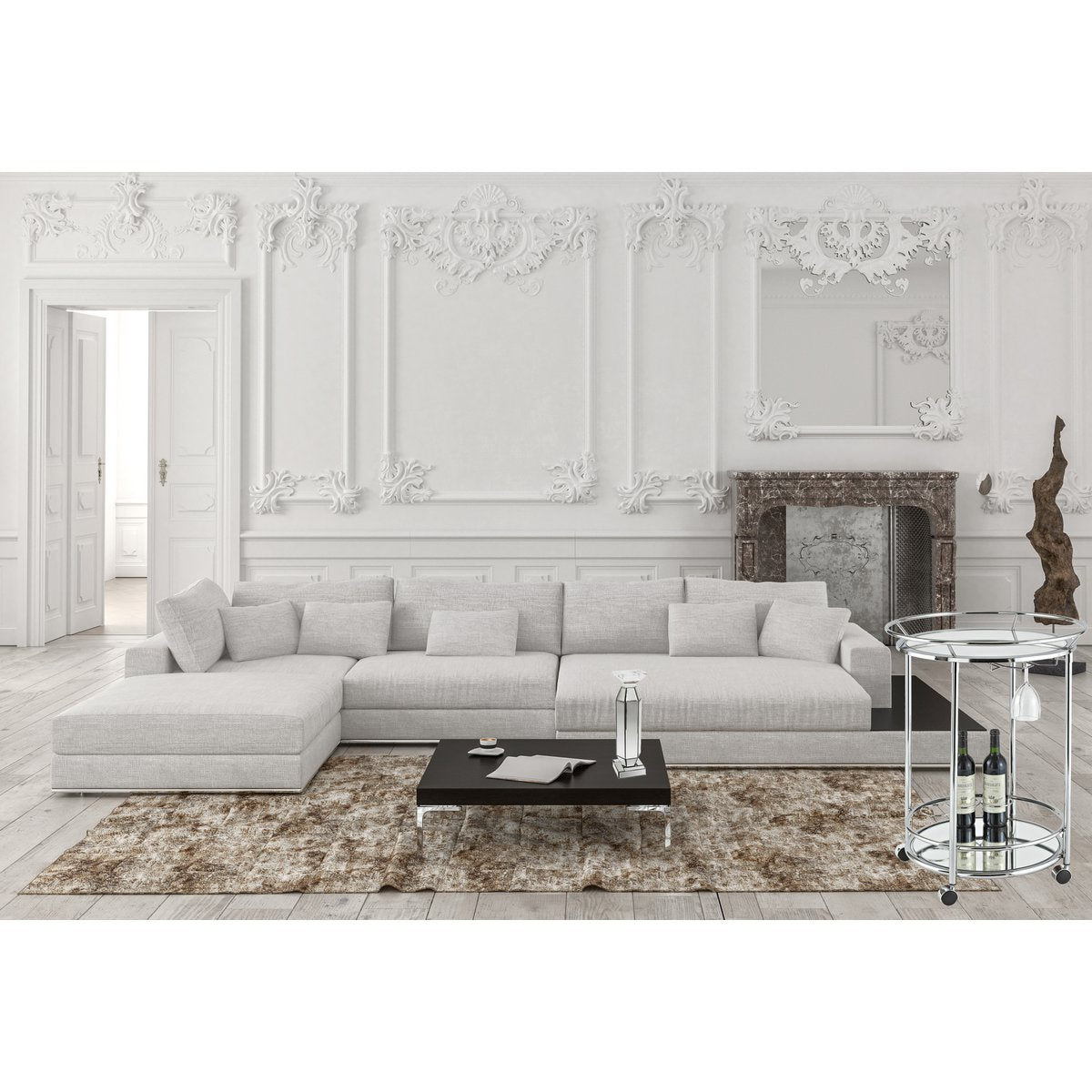 Ontdek de verfijnde elegantie van onze ronde zilveren roestvrijstalen service met twee spiegelachtergronden, een ontwerpstuk dat moderniteit en bruikbaarheid combineert. De briljante metalen structuur en spiegelbakken reflecteren licht en voegt een vleugje glamour toe aan je interieur.