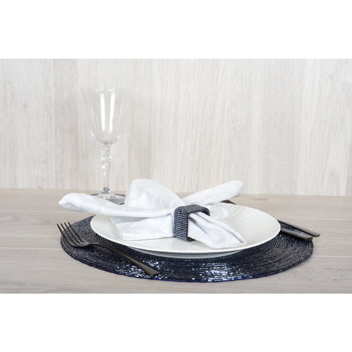 692502 - Set van 4 rondes van rechthoekige servetten Dark Blue Pearl - Aulica