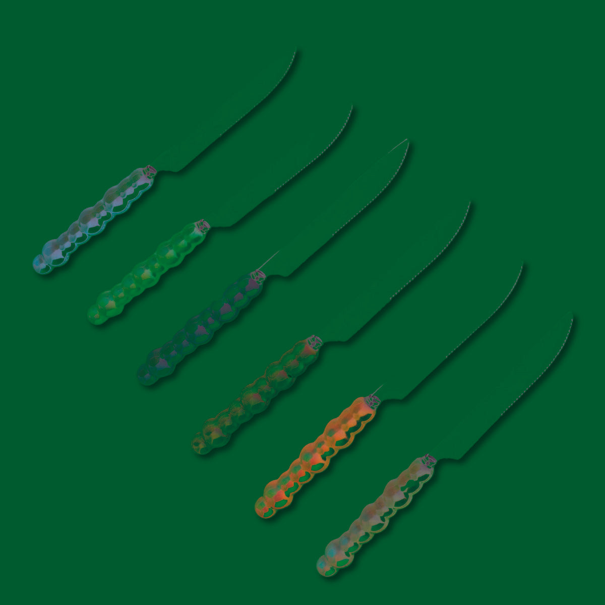 Reis naar verre horizon met onze collectie druppel ontspanning. Messen voor je gouden menu's, in sprankelende kleuren, vervoeren je maaltijden naar een atypische en stijlvolle sfeer.