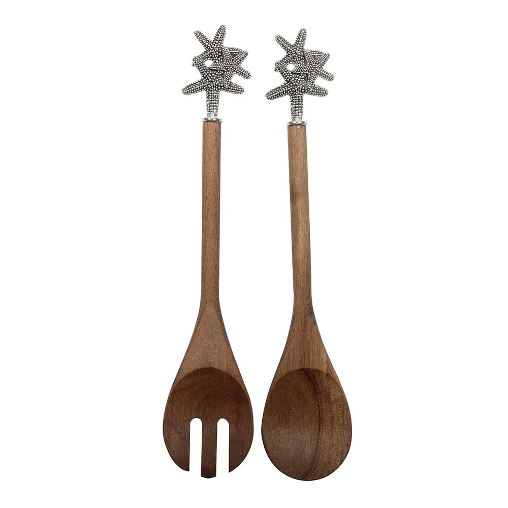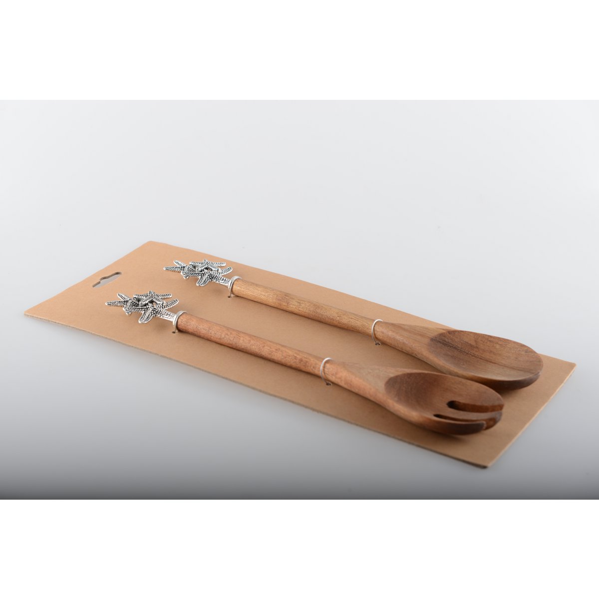 Ontdek onze houten saladomekken, gesublimeerd door een zilveren metaalontwerp dat zeesterren oproept. Perfect voor het brengen van een vleugje fantasie en verfijning aan uw maaltijden, deze salade bestek ambachten en esthetiek voor een memorabele culinaire ervaring vol charme.