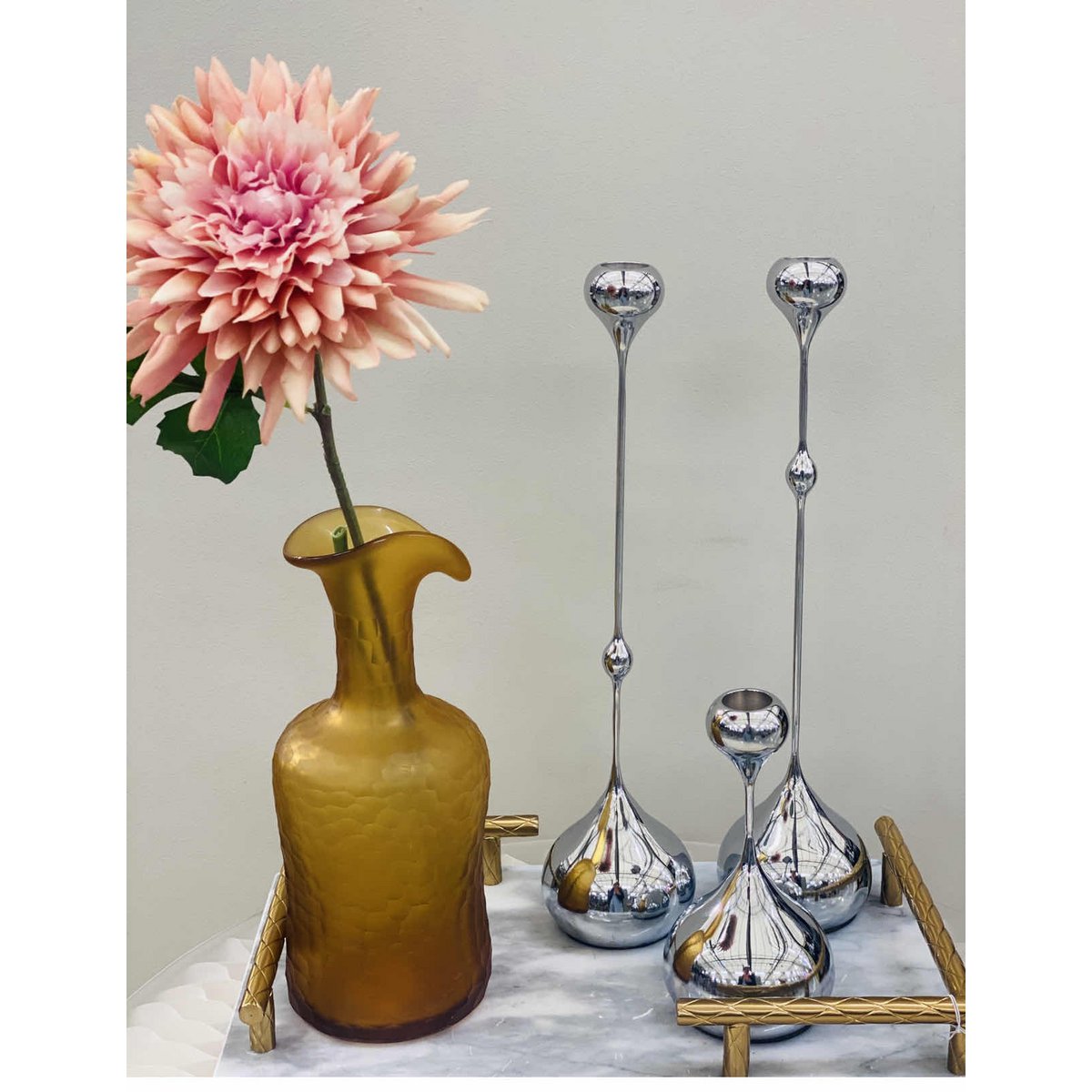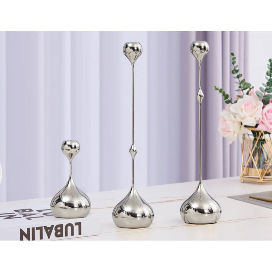 Zachte kandelaarDeze kandelaars van massief hooggepolijst nikkel, ontdekt in China, voegen een sculpturale uitstraling toe aan de eettafel of schoorsteenmantel....