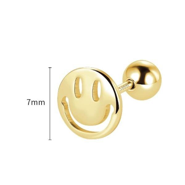 Deze charmante oorstekers hebben een hol lachend gezicht dat elke outfit een vleugje eigenzinnigheid geeft. Verkrijgbaar in twee opties, goud vermeil en sterling zilver, deze studs zijn gemaakt van massief zilver. Met een diameter van 7 mm zijn ze klein en schattig, waardoor ze geschikt zijn voor dagelijks gebruik. De achterkant heeft een zilveren schroefontwerp, dat niet alleen veilig is, maar ook zacht voor de oren, waardoor je ze zelfs tijdens het slapen comfortabel kunt dragen. Deze unisex oorbellen passen bij zowel casual als formele kleding. Of je jezelf nu trakteert of op zoek bent naar het perfecte cadeau, onze Timeless Design Smiling Face-oorstekers zullen je zeker bekoren.