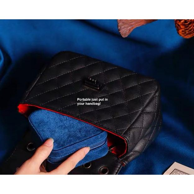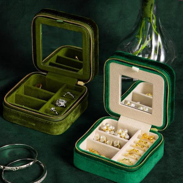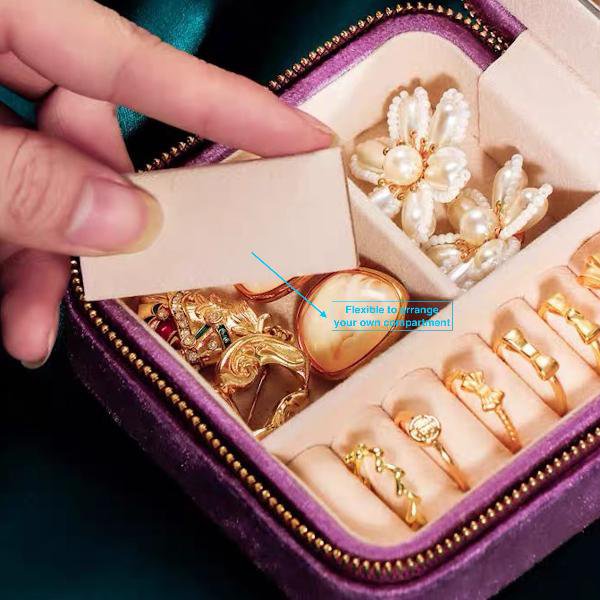 Deze compacte juwelendoos is ontworpen voor de stijlvolle zwerver en biedt niet alleen een veilig, maar ook een visueel verrukkelijk onderkomen voor uw dierbare sieraden. Gemakkelijk in uw handtas te stoppen, het belooft een toevluchtsoord voor uw kostbare stukken tijdens het reizen. Onze sieradendoos is verkrijgbaar in een scala aan levendige kleuren. Met afmetingen van 10x10x5cm wachten er verschillende compartimenten om elk stuk van uw collectie met de grootste zorg in te bewaren. Ontworpen om ervoor te zorgen dat elk item, van ringen en armbanden tot kettingen en oorbellen, zijn aangewezen plek heeft en beschermt tegen verstrikking en schade. De 18-karaats vergulde ritssluiting, vervaardigd met behulp van geavanceerde vacuümplatingtechnologie, accentueert de tijdloze uitstraling en zorgt ervoor dat bij elke interactie een vleugje weelde wordt gevoeld.