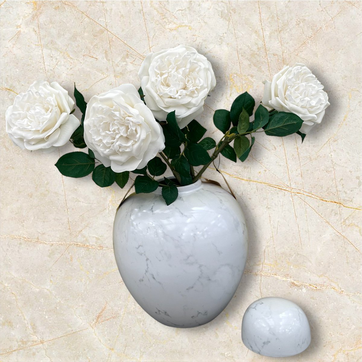 Vintage keramische ronde vaas met bloemen (wit groot H*28W*25 )