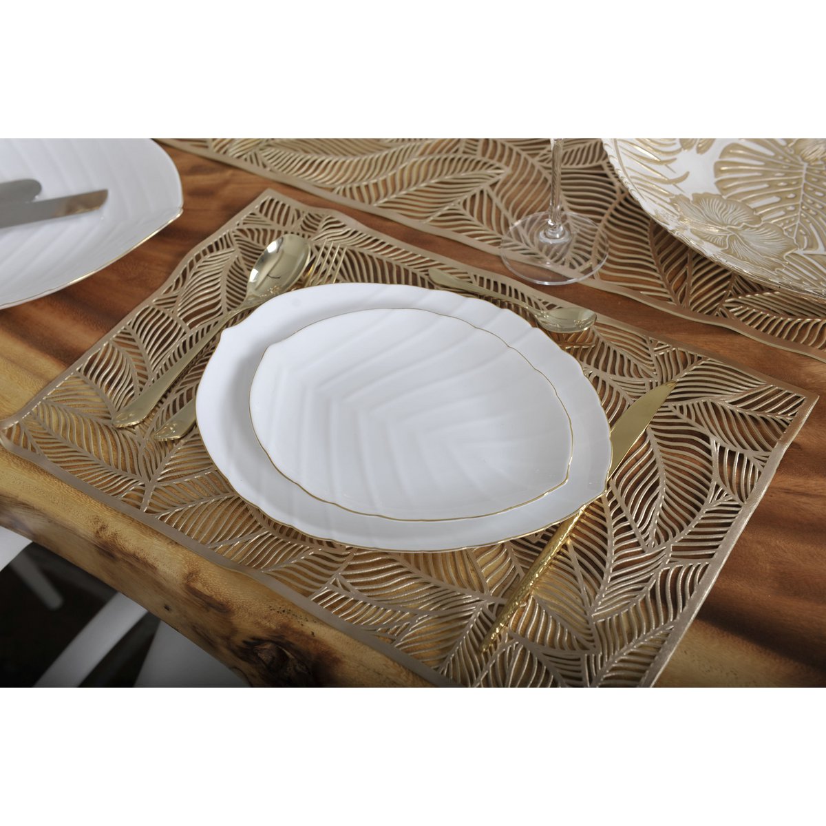 Dompel jezelf onder in de betoverende wereld van onze Chimera -collectie. Witte platen verbeterd met gouden toetsen voegen een vleugje magische en tijdloze elegantie toe aan uw tafel, voor maaltijden die sprookjes waardig zijn.