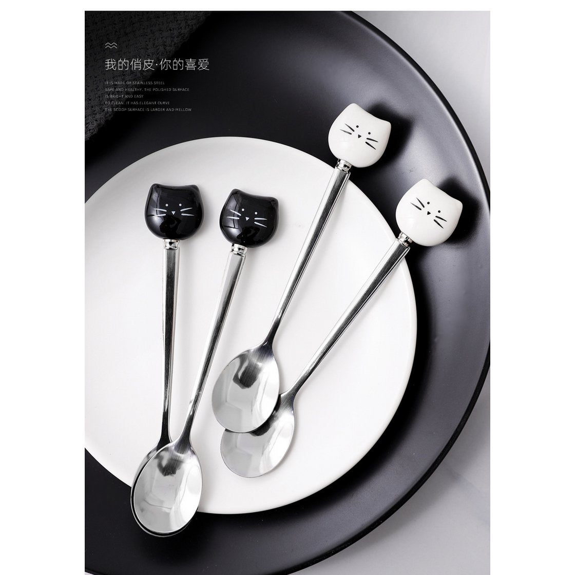 Ontdek de elegantie van witte en zwarte kattenlepels.