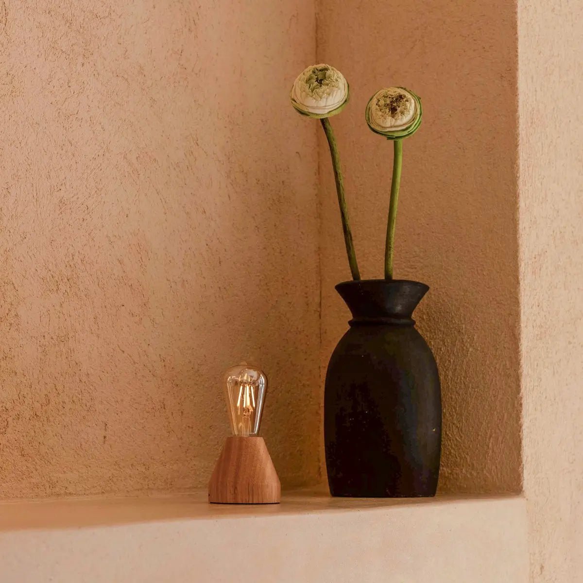 Zavi lichtbruin oplaadbare LED-tafellamp-draadloos, dimbaar, 80-uur batterij stijlvol model: de draadloze LED-tafellamp van Tavellio is een eerbetoon aan de klassieke gloeilamp en biedt moeiteloze sfeer zonder het gedoe van koorden. Oplaadbaar en draadloos: dankzij het oplaadbare en draadloze ontwerp kunt u de taflamp gemakkelijk verplaatsen zonder rekening te houden met stroomuitlaten. De ingebouwde batterij is snel op te laden via de meegeleverde USB-kabel en biedt tot 60 uur verlichting, dus u bent altijd verzekerd van voldoende verlichting. Gemakkelijk gebruik: de lamp is gemakkelijk te bedienen met slechts één eenvoudige aanraking. Hiermee kunt u de lamp gemakkelijk in- of uitschakelen. Dimbare functie: de lichtintensiteit van de lamp kan als gewenst worden aangepast met behulp van de touch-dim knop die de juiste ambiance van uw keuze zorgt. Eco-vriendelijke keuze: de lamp is gemaakt van rubberwood, een van de meest milieuvriendelijke bos. Het draagt bij aan een cirkelvormige houtindustrie omdat het alleen wordt gebruikt na de volledige levensduur van de boom. Het gebruik ervan bevordert duurzaam bosbeheer en helpt afval te verminderen. De lamp heeft een laag stroomverbruik. Toepasbaarheid: de draadloze functionaliteit geeft u de vrijheid om de lamp overal te plaatsen, terwijl opladen eenvoudig is via moderne technologie. Een veelzijdig en trendy item dat gemakkelijk te gebruiken is. De Zavi past goed in elk interieur en is verkrijgbaar in twee verschillende kleuren. Specificaties · · Afmetingen: 10 cm Ø, 25 cm hoog · Materiaal: rubberwood, glas · Kleuren: lichtbruin, donkerbruin · Batterij: 2000 mAh (7 tot 60 uur, afhankelijk van het gebruik van het gebruik) · LED-licht · Handmade, anti-slip, draadloos en gemakkelijk dimkable · USB-CRECHARGEBAAR, CABLE BELANGRIJK