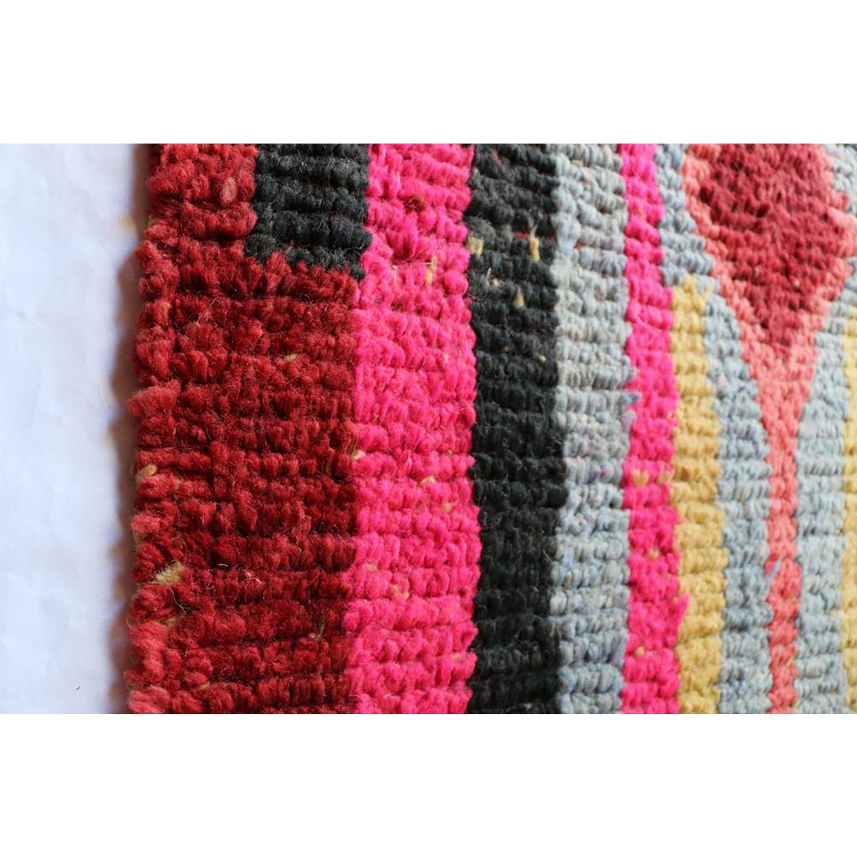 Tover je interieur om tot een comfortabele en warme cocon met dit authentieke Berber-tapijt geweven in het Atlasgebergte in het hart van Marokko. Onze Berber-tapijten worden gemaakt door vrouwen van Berber-stammen. De grondstof is de wol van een specifieke schapensoort, bekend om zijn kleine formaat en hoge sterkte. Het maken van deze tapijten vereist uitzonderlijk vakmanschap, doorgegeven van generatie op generatie, evenals een grote dosis geduld. Het duurt 1 tot 4 maanden – afhankelijk van de grootte van het vloerkleed – om elk van deze unieke stukken te maken. Deze tapijten zijn geweven in de Marokkaanse regio Boujad. Hun vaak heldere en gedurfde kleurenpalet is verkregen uit natuurlijke kleurstoffen gewonnen uit lokale planten. Afmetingen: 402 x 75 cm (13,19 x 2,46 ft) Gewicht: 6,7 kg (14,77 lbs) Materiaal: Wol (100% schapenwol) Vorm: Rechthoek Stam: Boujad Conditie: Recent gemaakt. Schoon en klaar voor gebruik. Perfecte staat Constructiedetails: Handgeknoopt Voor het onderhoud van een Berber-tapijt is het raadzaam om het tapijt regelmatig en voorzichtig af te stoffen. Kies bij voorkeur voor een stofzuiger met een zacht mondstuk. Bij vlekken snel deppen met absorberend papier, eventueel baking soda gebruiken, alvorens de behandeling af te ronden met een stofzuigbeurt.